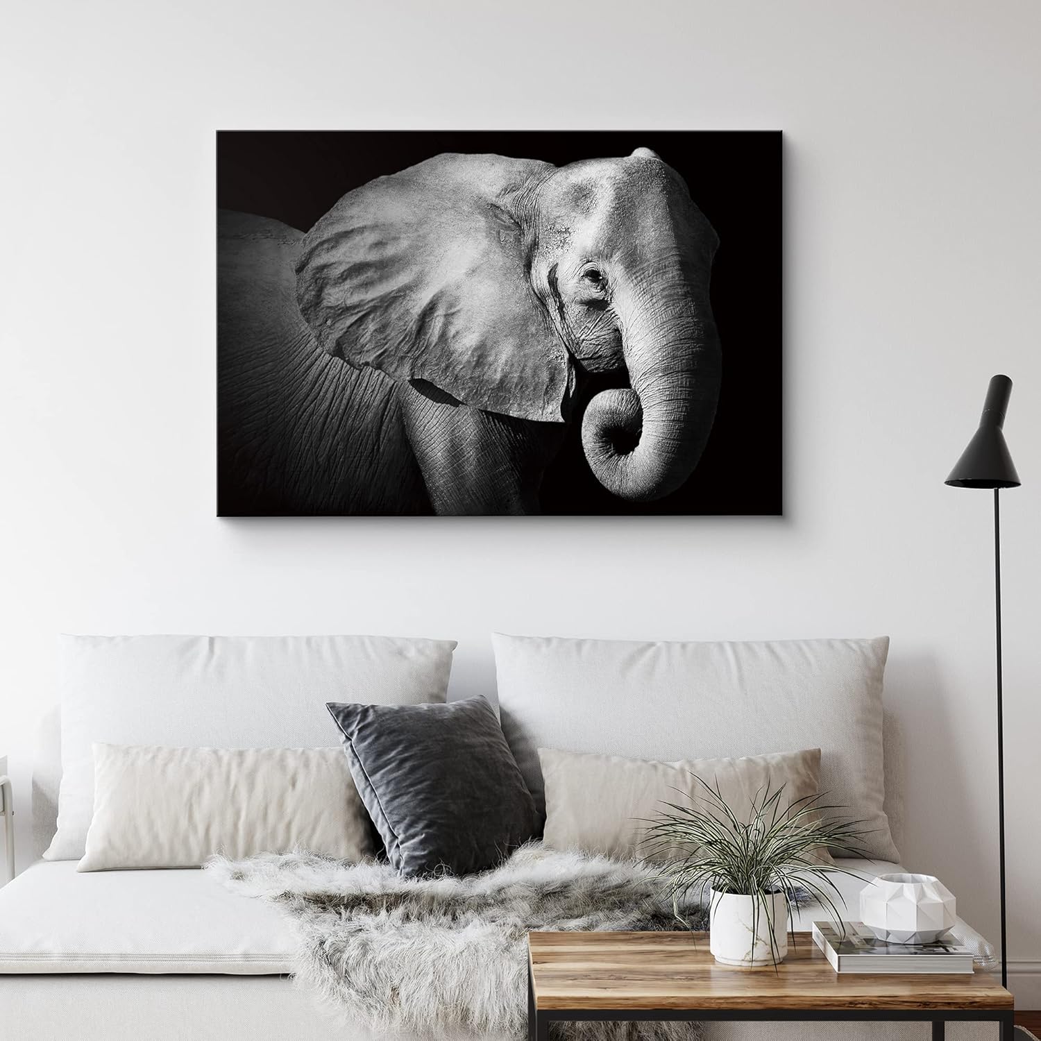 IDEA4WALL Canvas Print Wall Art Close Up Elephant Portrait Animals Wildlife Photography Realism Modern Dramatic Grey Dark Black and White for Living Room Bedroom Office