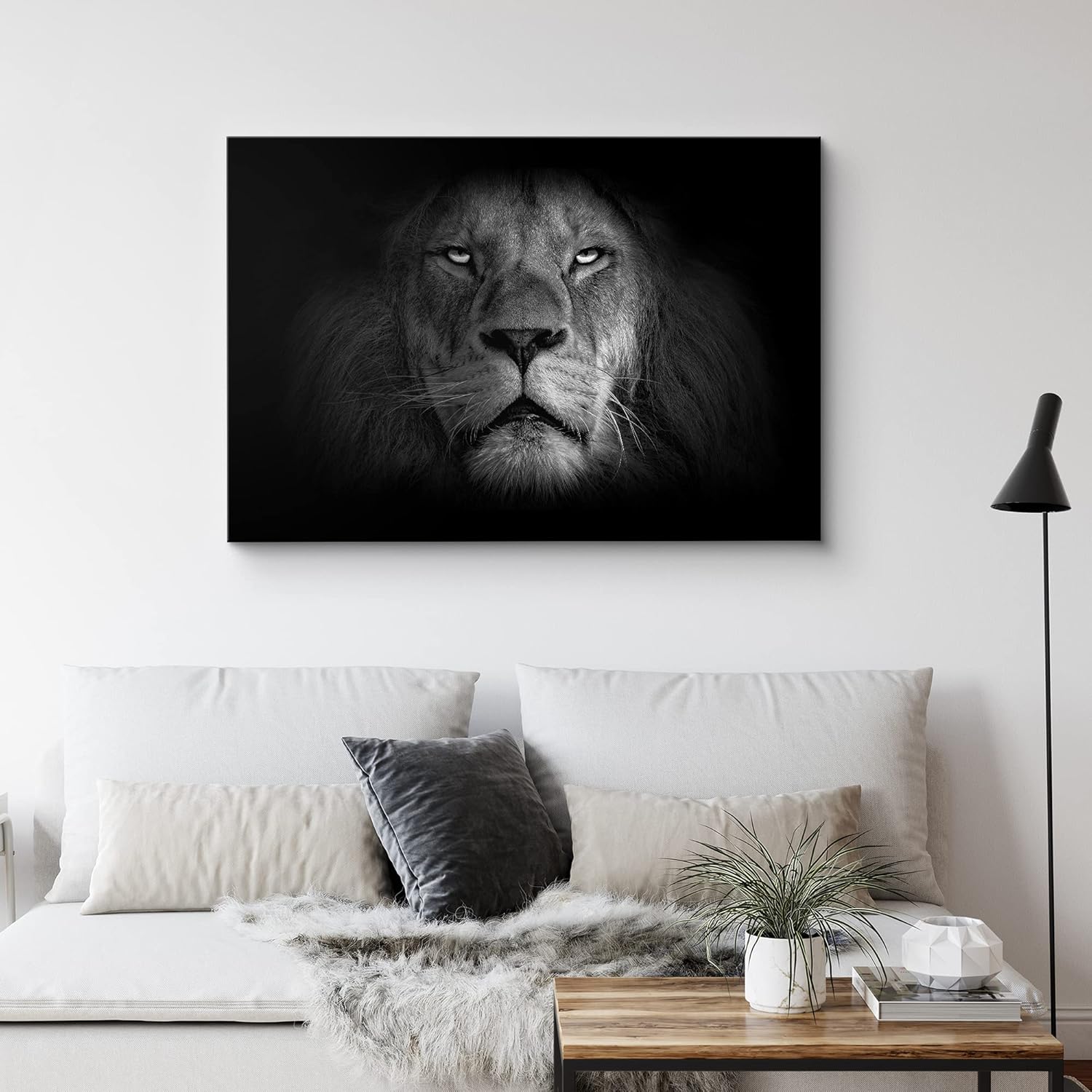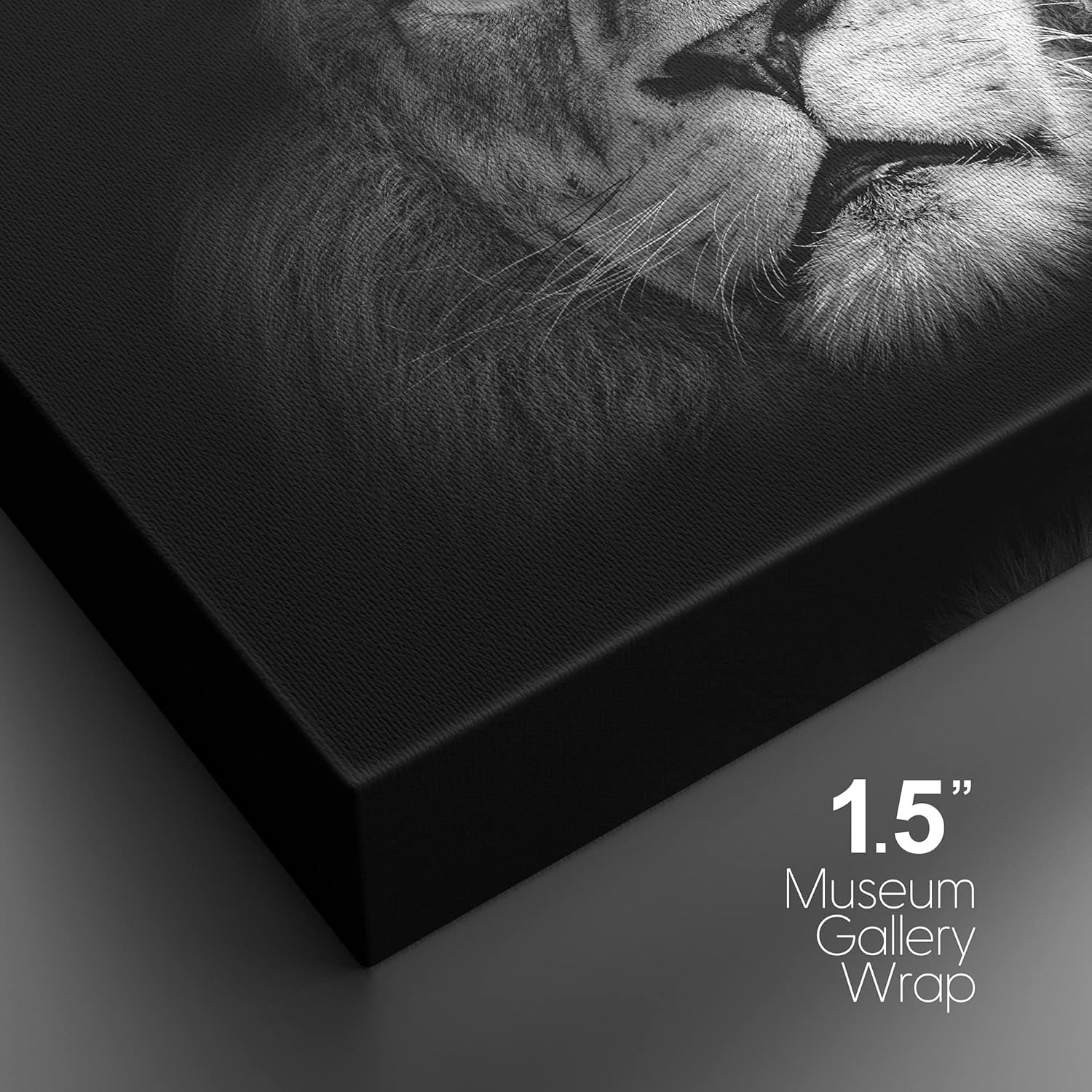 IDEA4WALL Canvas Print Wall Art Close Up Lion Portrait Animals Wildlife Photography Realism Modern Dramatic Grey Dark Black and White for Living Room Bedroom Office