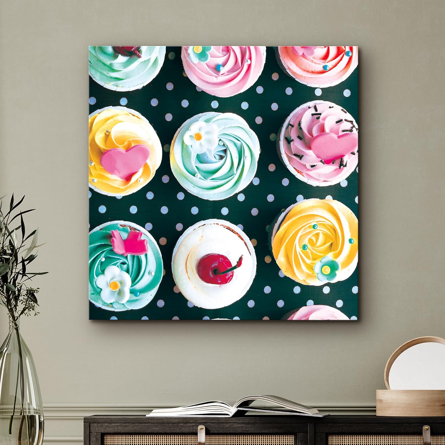 IDEA4WALL Canvas Print Wall Art Delicious Cupcake Variety Food Dessert Photography Realism Glam Colorful Multicolor Ultra for Living Room, Bedroom, Office - 12"x12"