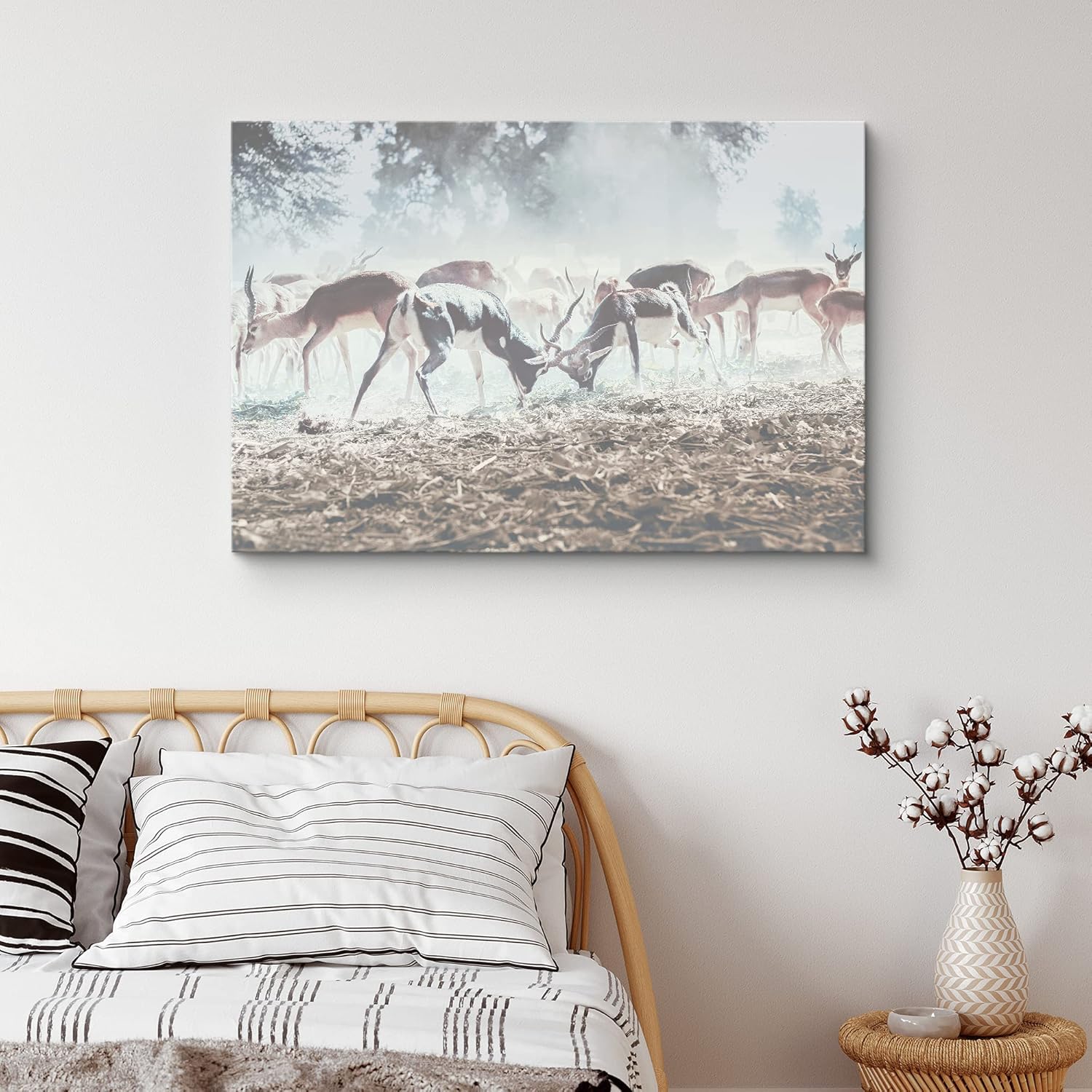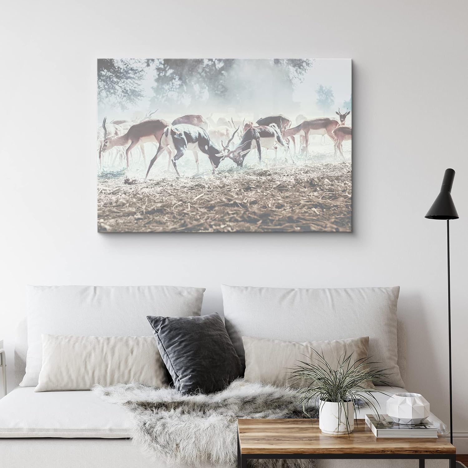 IDEA4WALL Canvas Print Wall Art Flock of Brown Deer on Field Animals Wildlife Photography Realism Contemporary Relax Calm Multicolor Cool for Living Room Bedroom Office