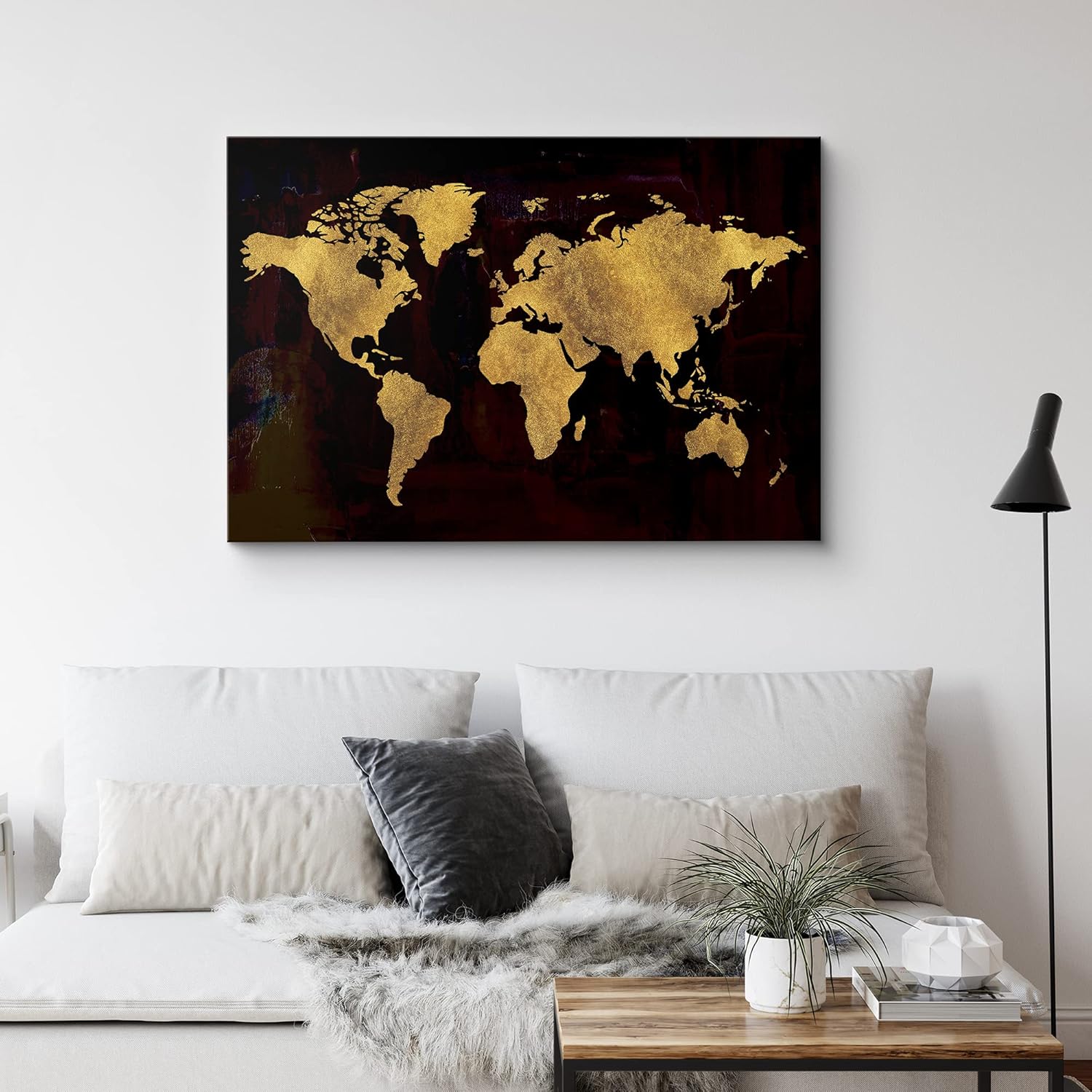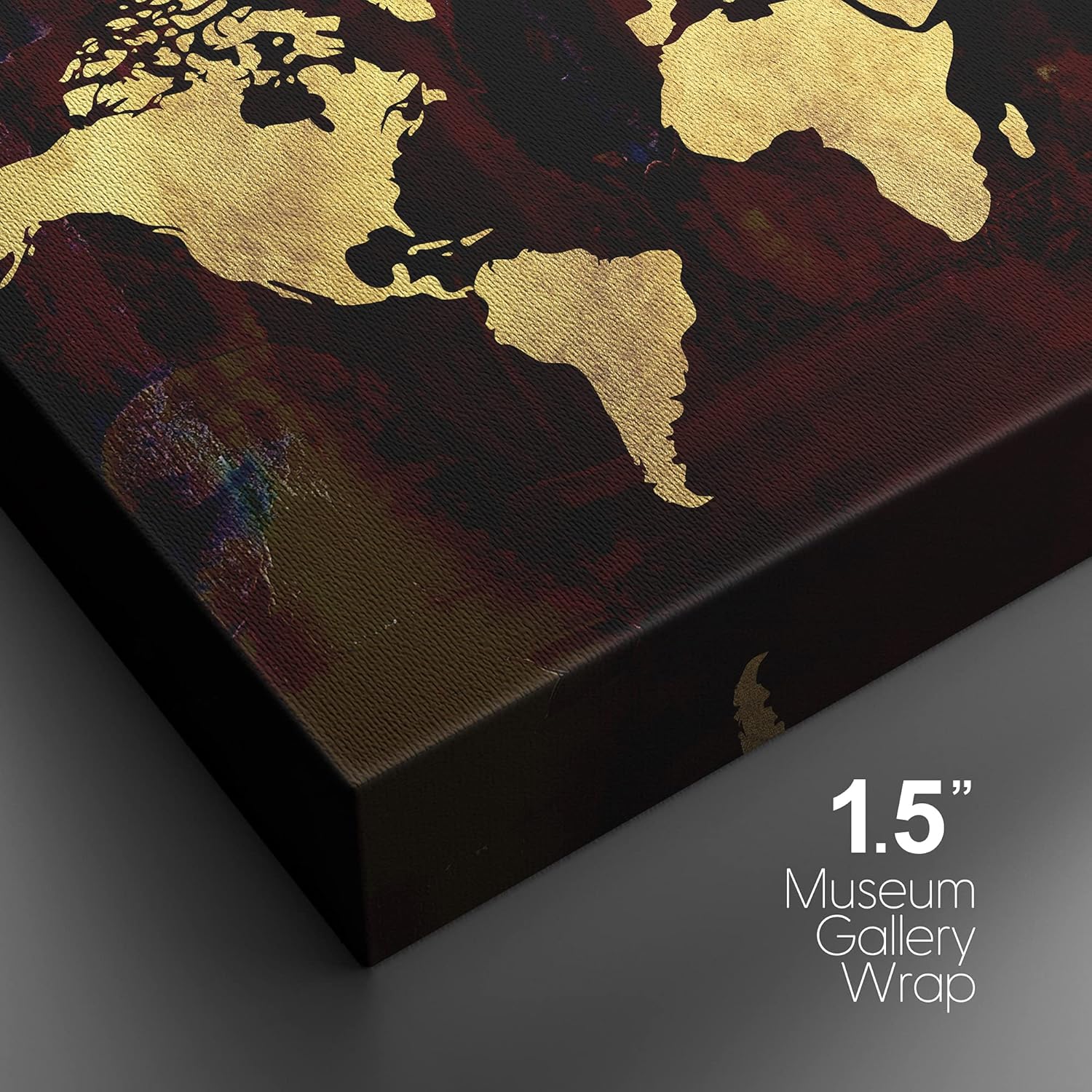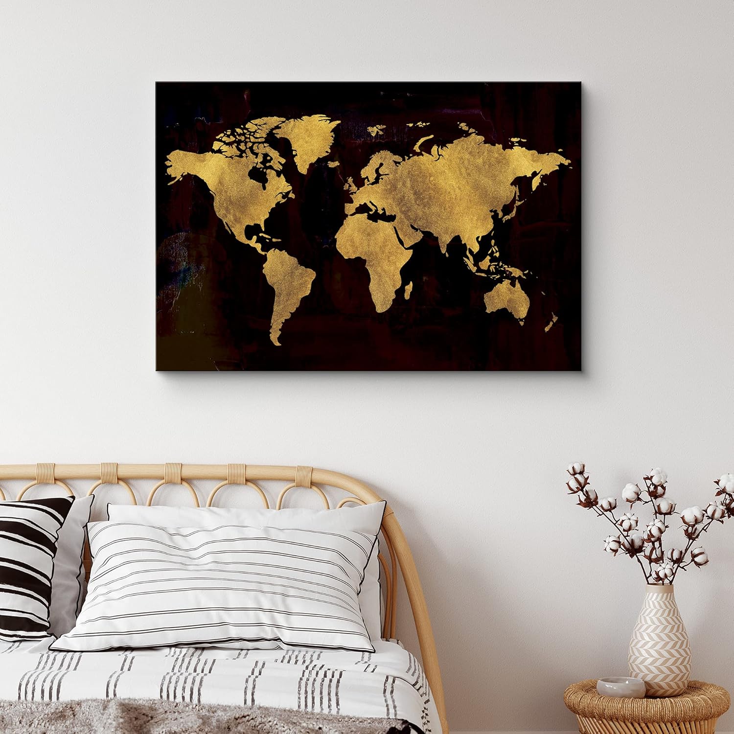 IDEA4WALL Canvas Print Wall Art Gold Gradient Black World Map Landscape Islands Digital Art Modern Art Contemporary Aerial Colorful Multicolor Warm for Living Room Bedroom Office