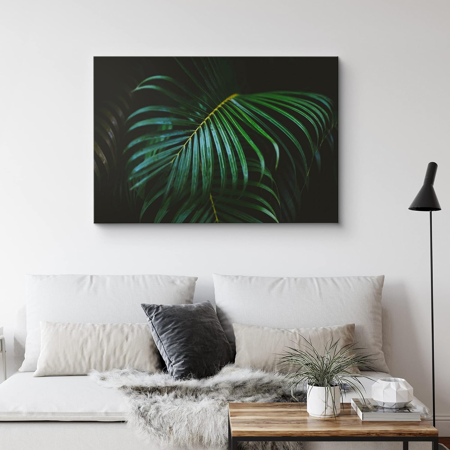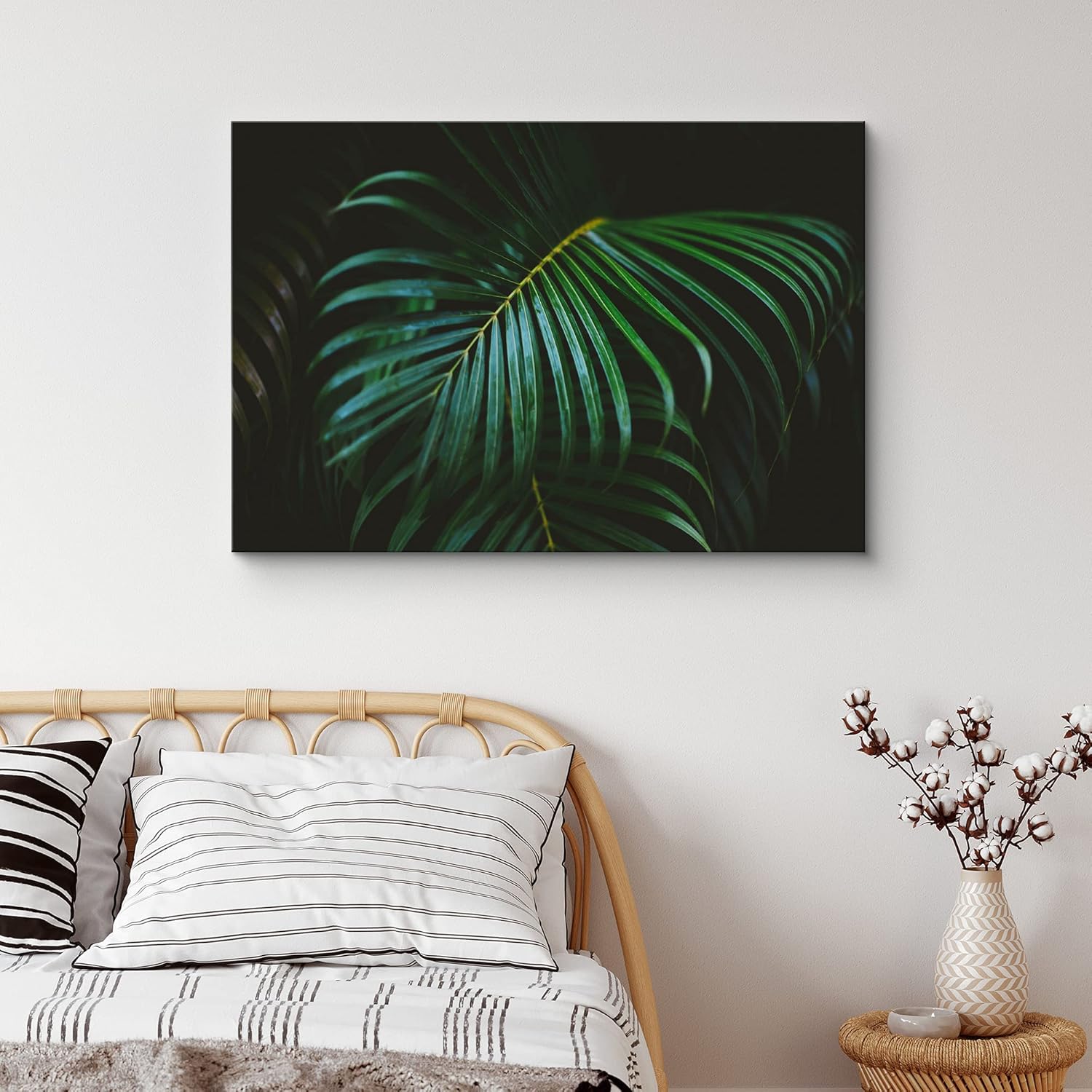IDEA4WALL Canvas Print Wall Art Jungle Palm Leaves on Black Background Floral Wilderness Photography Realism Modern Colorful Multicolor Dark for Living Room Bedroom Office