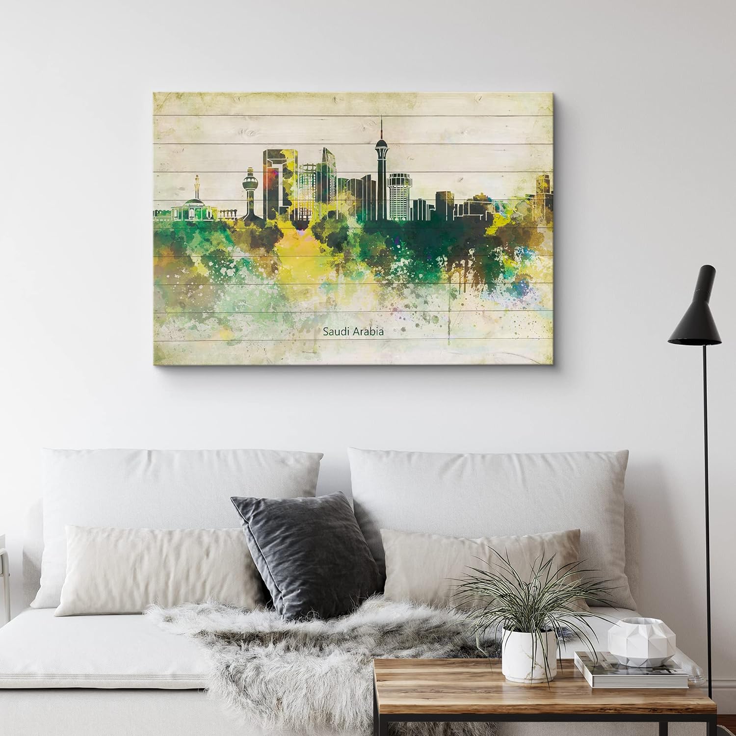 IDEA4WALL Canvas Print Wall Art Saudi Arabia Paint Splatter Landmarks Architecture Maps Cities Modern Art Global Scenic Colorful Multicolor Ultra for Living Room Bedroom Officec