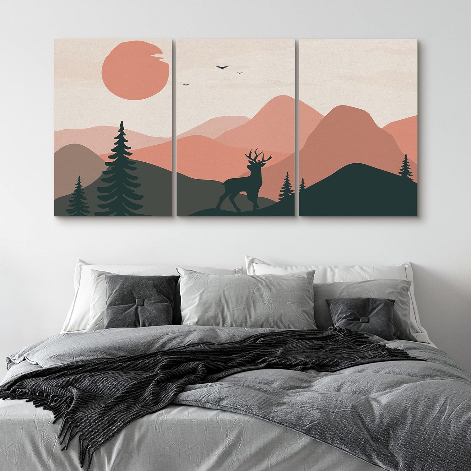 IDEA4WALL Canvas Print Wall Art Set Dear Walks ATOP The Mountain Animals Wilderness Illustrations Modern Art Southwest Scenic Relax Calm Multicolor Warm for Living Room Bedroom Office x3