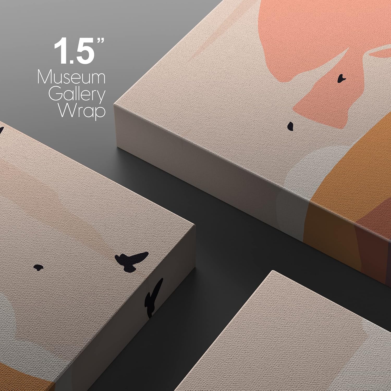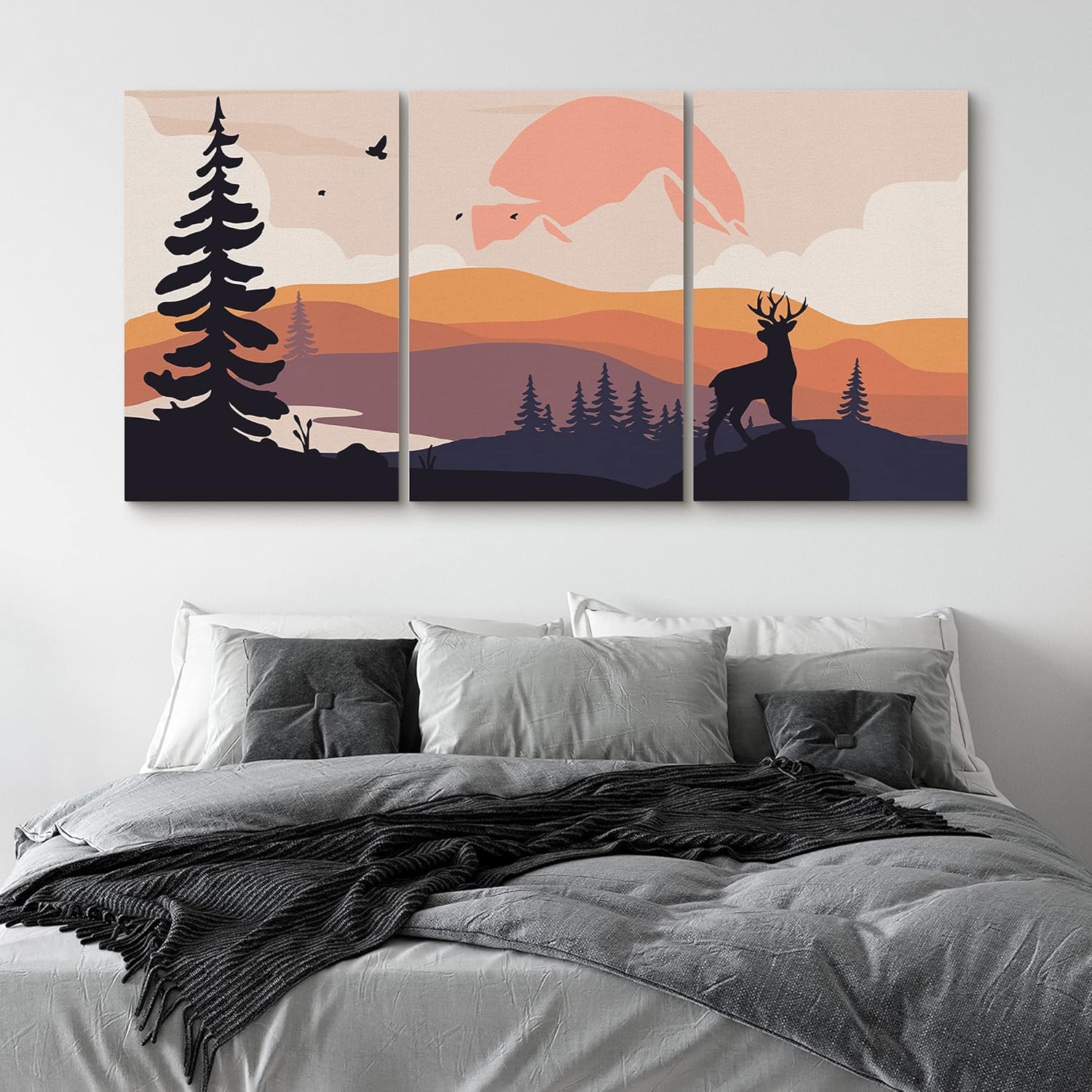 IDEA4WALL Canvas Print Wall Art Set Deer Above Orange Mountain Range Animals Wilderness Illustrations Modern Art Southwest Scenic Relax Calm Multicolor Warm for Living Room Bedroom Office x3