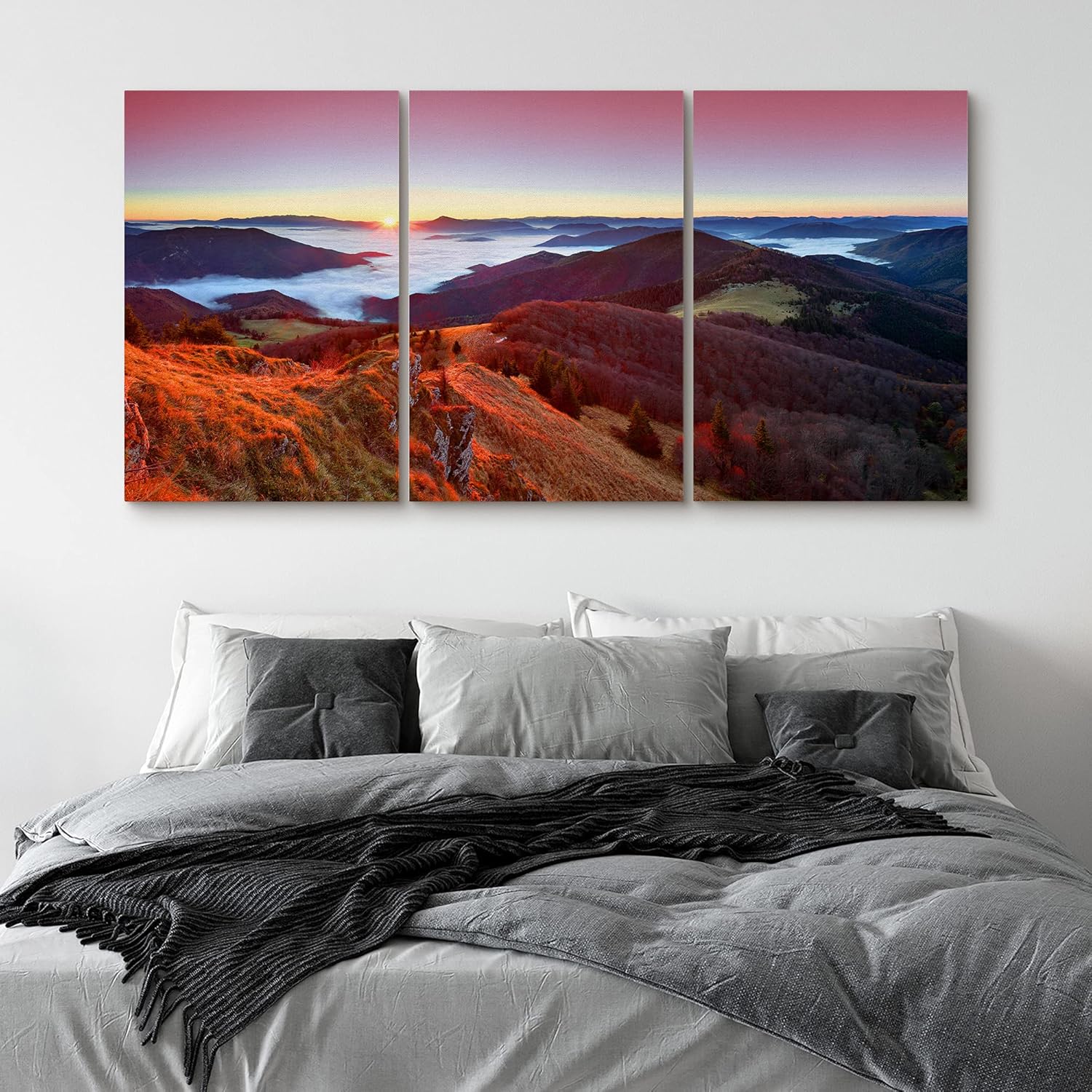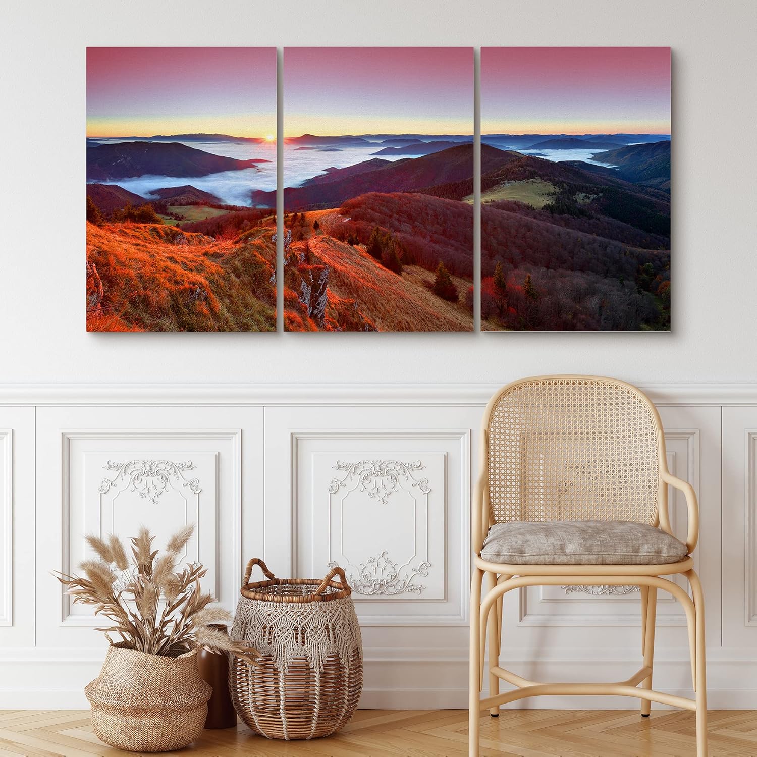 IDEA4WALL Canvas Print Wall Art Set Mountain Peaks in The Red Sunlight Nature Wilderness Photography Realism Southwest Scenic Relax Calm Multicolor Ultra for Living Room Bedroom Office x3