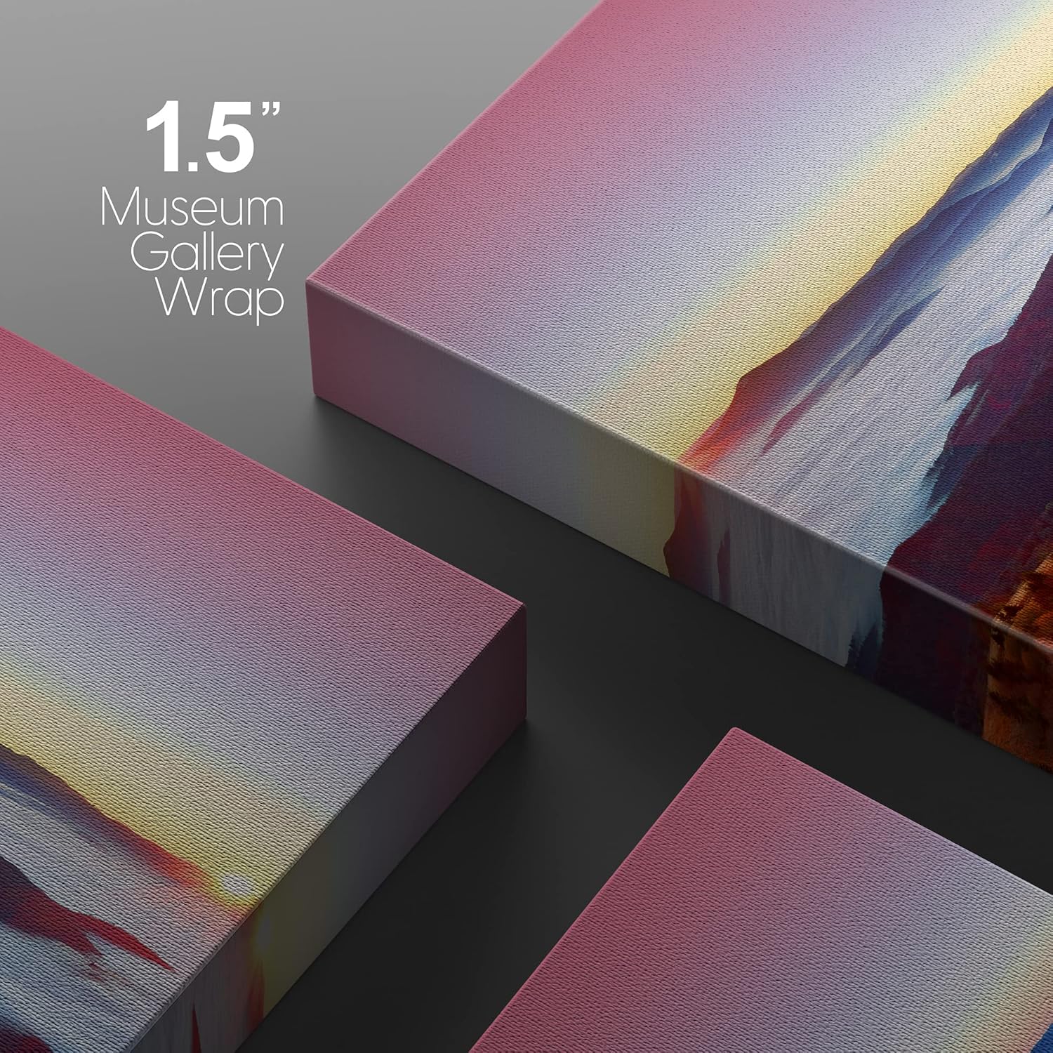 Canvases are wrapped and stretched on a 1.5" thick formaldehyde-free frames. Our frames are lightweight, sturdy, and professionally made in-house to the highest standards. They are resistant to warping from climate changes in your home. Certainly a professional touch to any room.