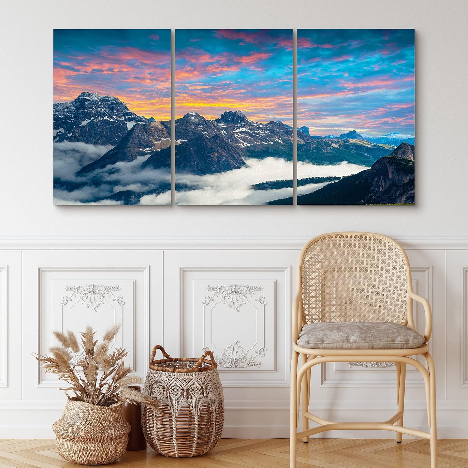 IDEA4WALL Canvas Print Wall Art Set Mountain Peaks Pierce The Clouds Nature Wilderness Photography Realism Southwest Scenic Relax Calm Multicolor Ultra for Living Room Bedroom Office x3
