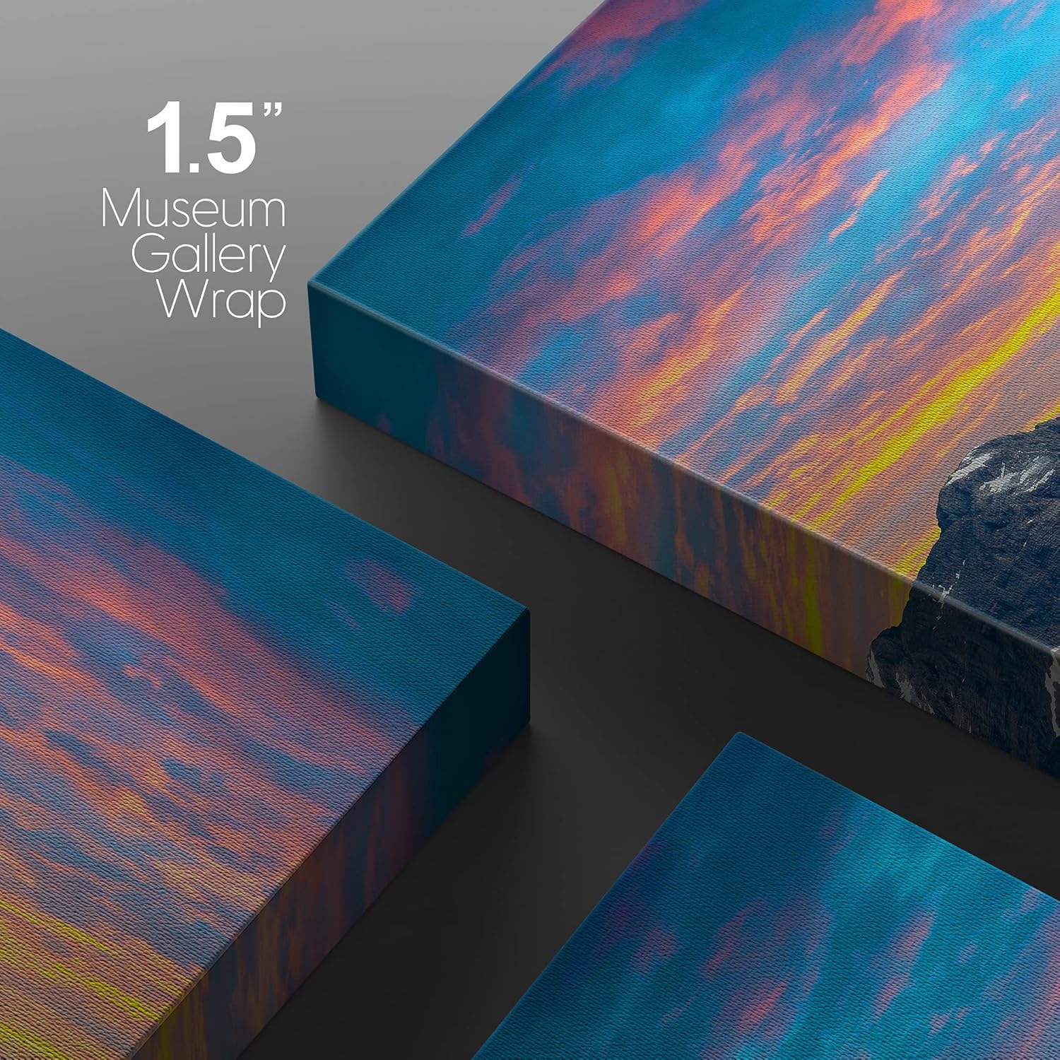Canvases are wrapped and stretched on a 1.5" thick formaldehyde-free frames. Our frames are lightweight, sturdy, and professionally made in-house to the highest standards. They are resistant to warping from climate changes in your home. Certainly a professional touch to any room.