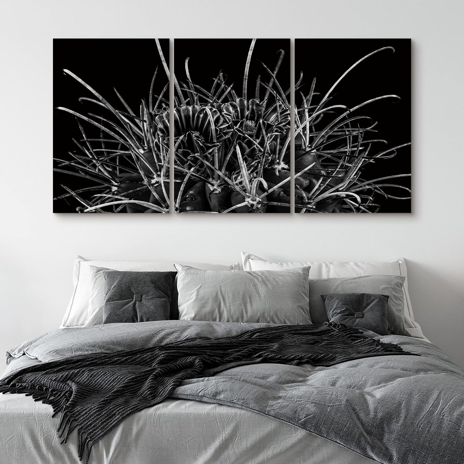 IDEA4WALL Canvas Print Wall Art Set Silver Cactus Plant Rises Floral Wilderness Photography Realism Southwest Group Dramatic Grey Dark Black and White for Living Room Bedroom Office x3