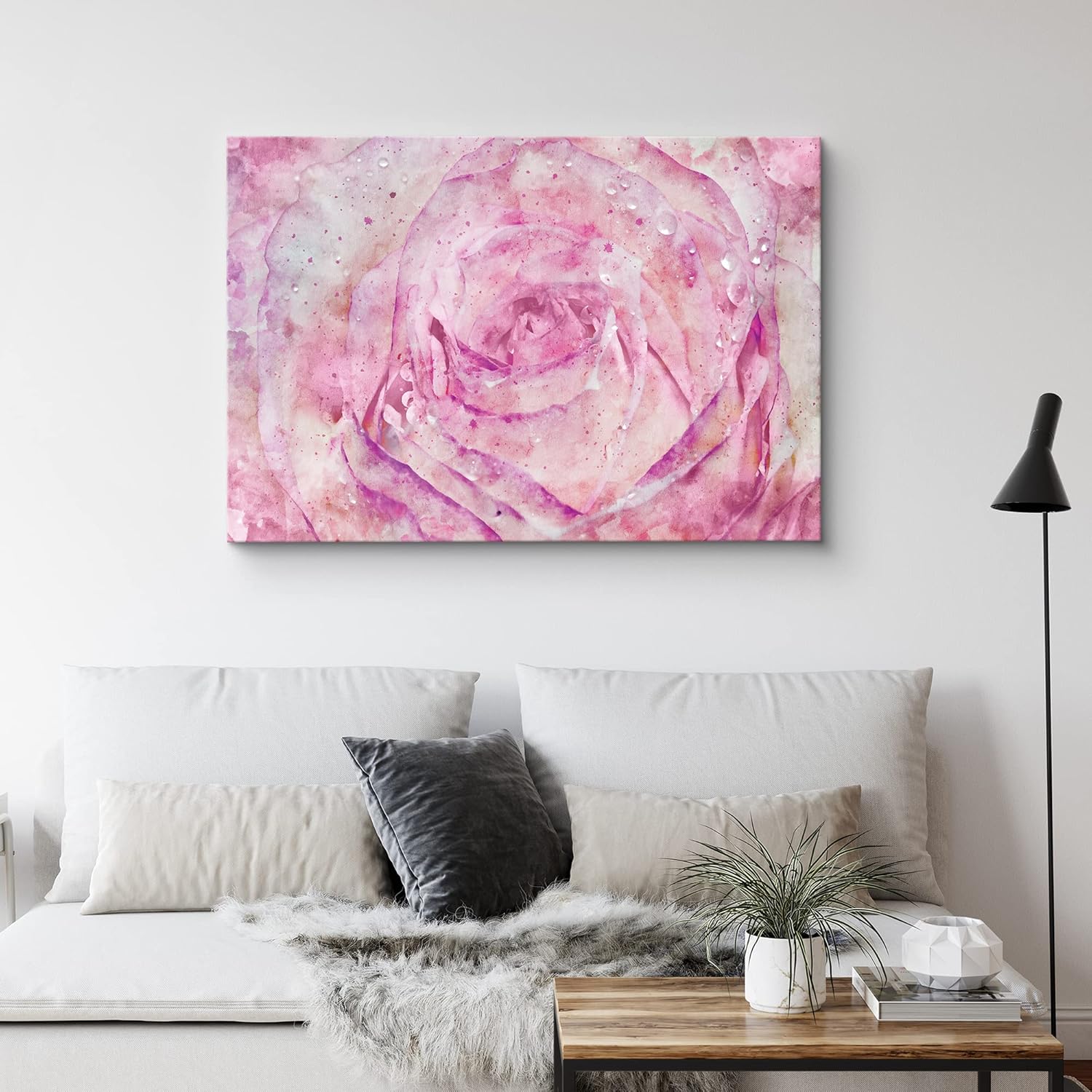 IDEA4WALL Canvas Print Wall Art Watercolor Style Pink Rose Floral Wilderness Mixed Media Realism Glam Whimsical Multicolor Ultra for Living Room Bedroom Office