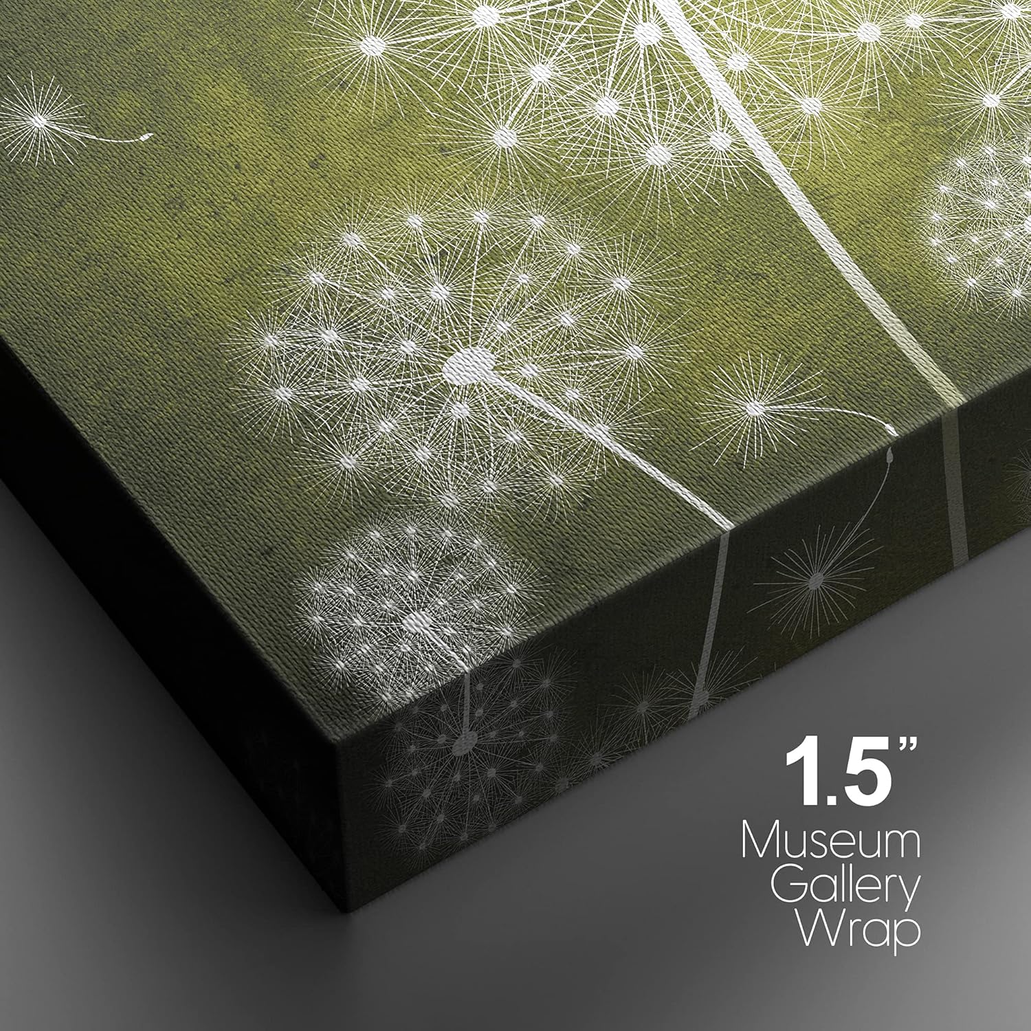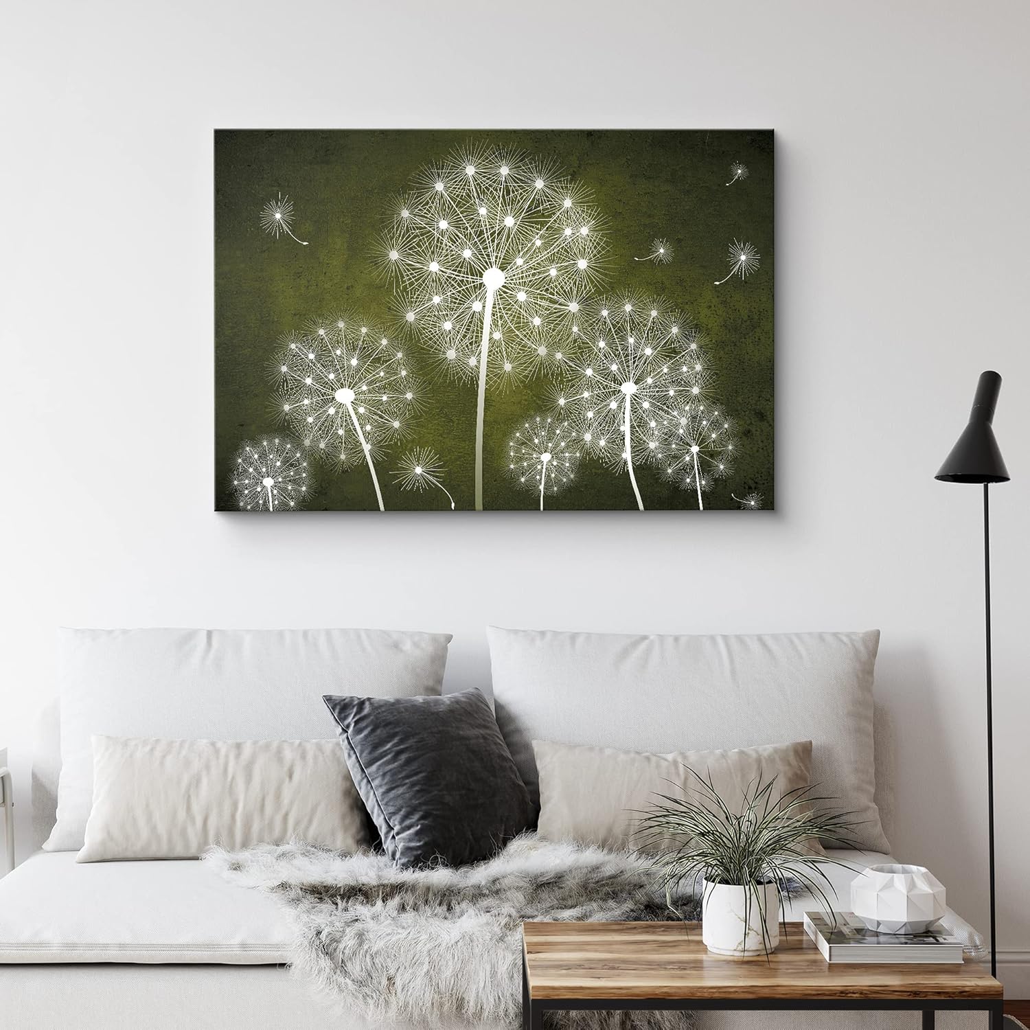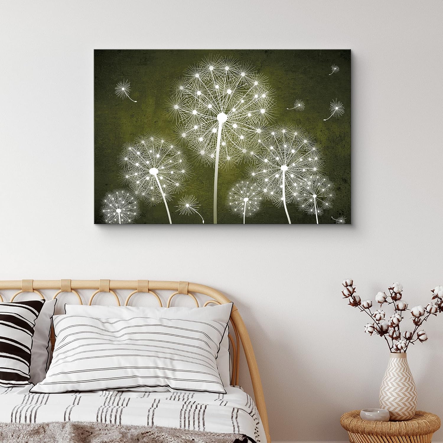 IDEA4WALL Canvas Print Wall Art White Dandelions on Green Background Botanical Plants Digital Art Modern Art Farmhouse Country Group Relax Calm Multicolor Cool for Living Room Bedroom Office