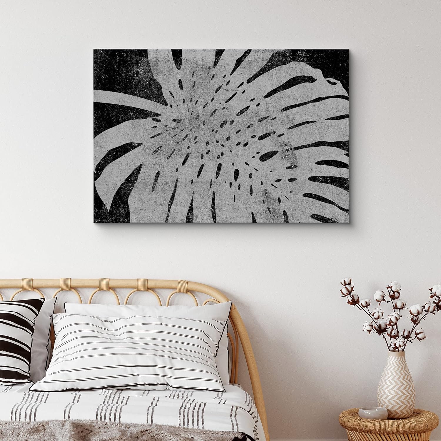 IDEA4WALL Canvas Print Wall Art White Monstera Leaf Close Up Floral Wilderness Illustrations Minimalist Chic Relax Calm Grey Dark Black and White for Living Room Bedroom Office