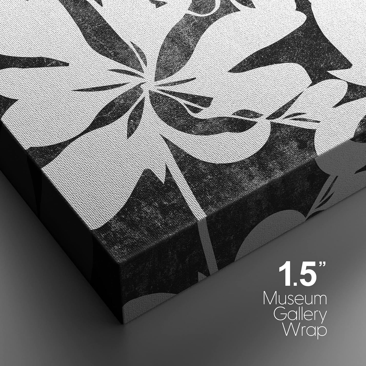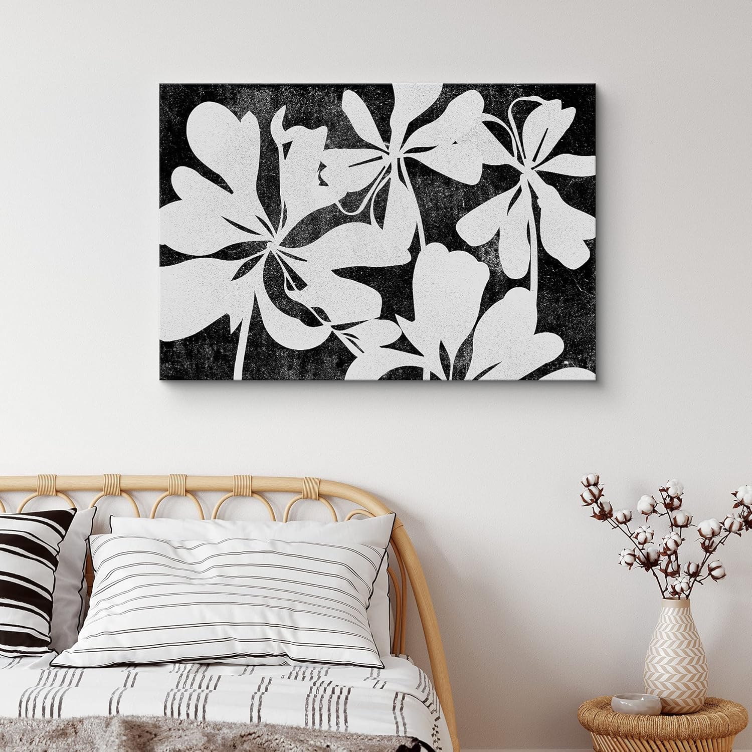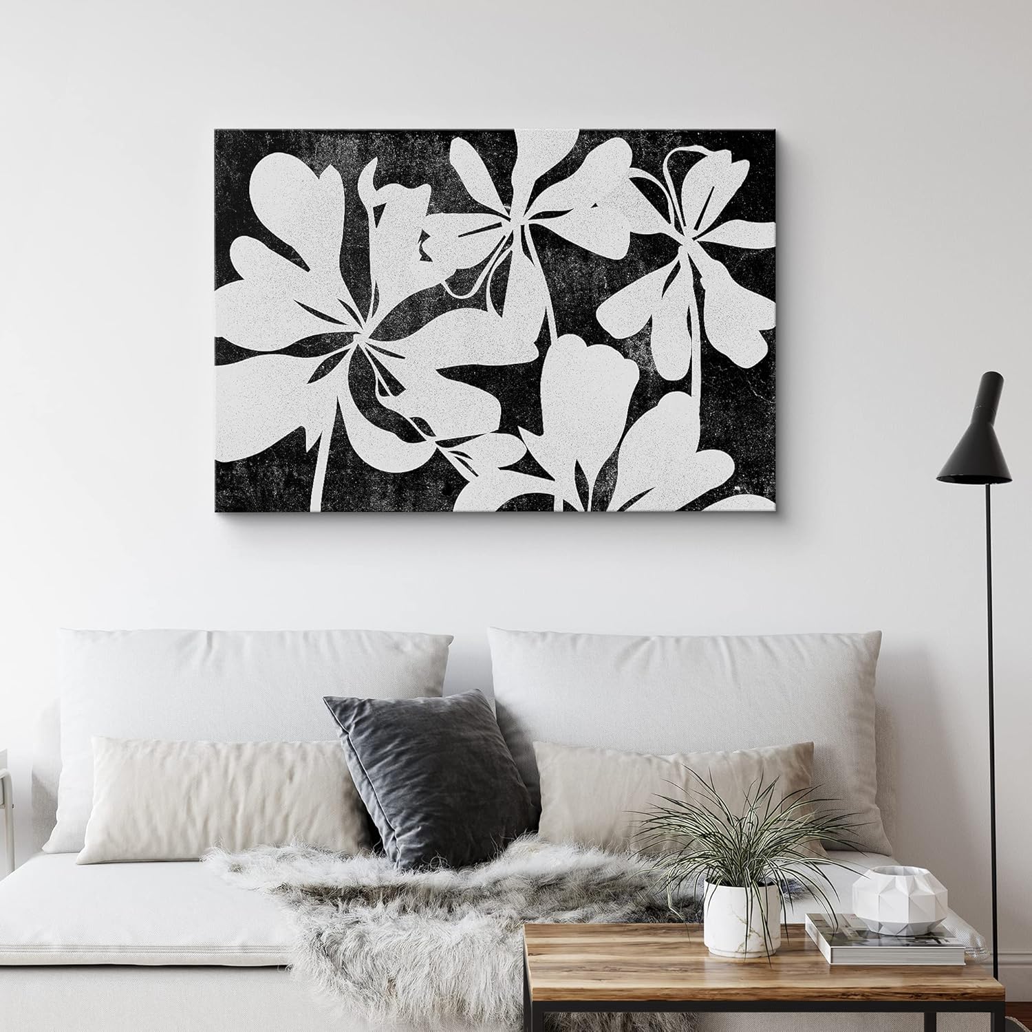 IDEA4WALL Canvas Print Wall Art Wood Sorrel Flowers Floral Wilderness Illustrations Minimalist Chic Relax Calm Grey Dark Black and White for Living Room Bedroom Office
