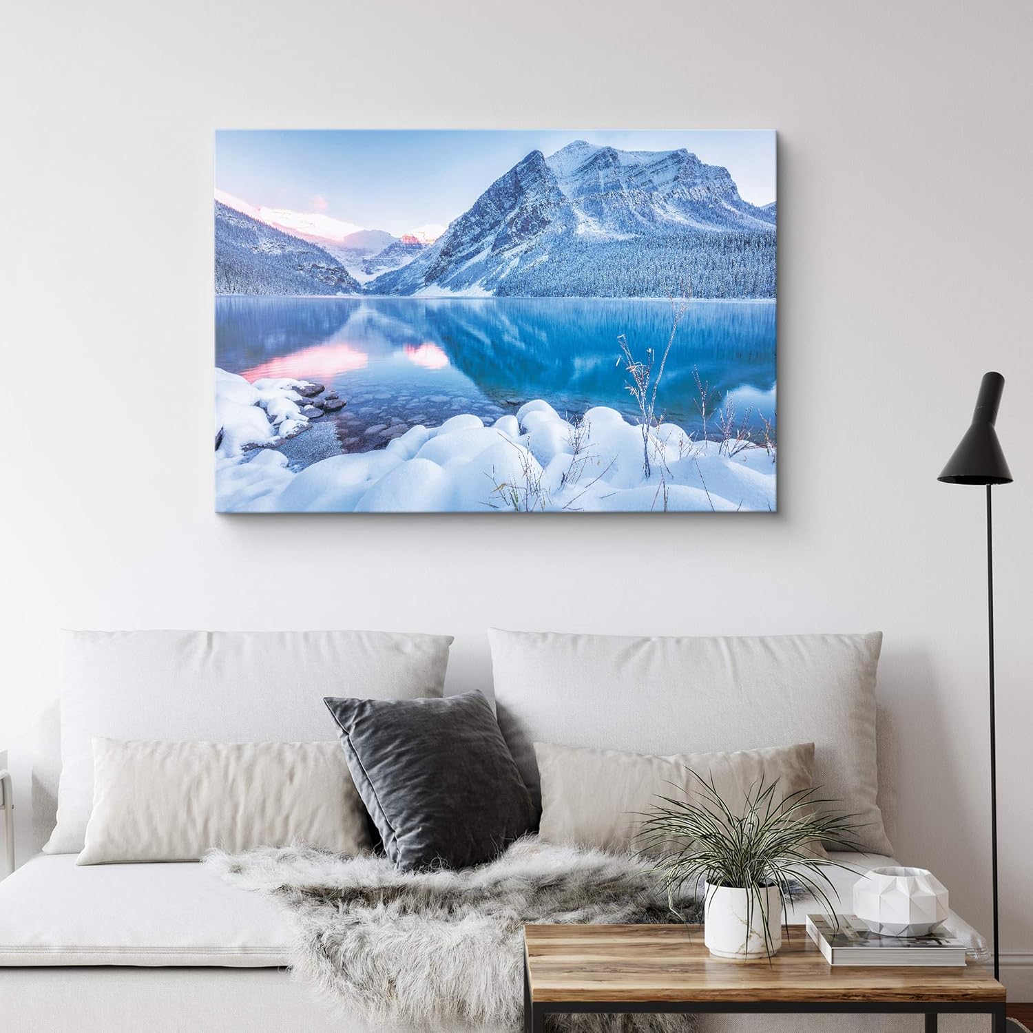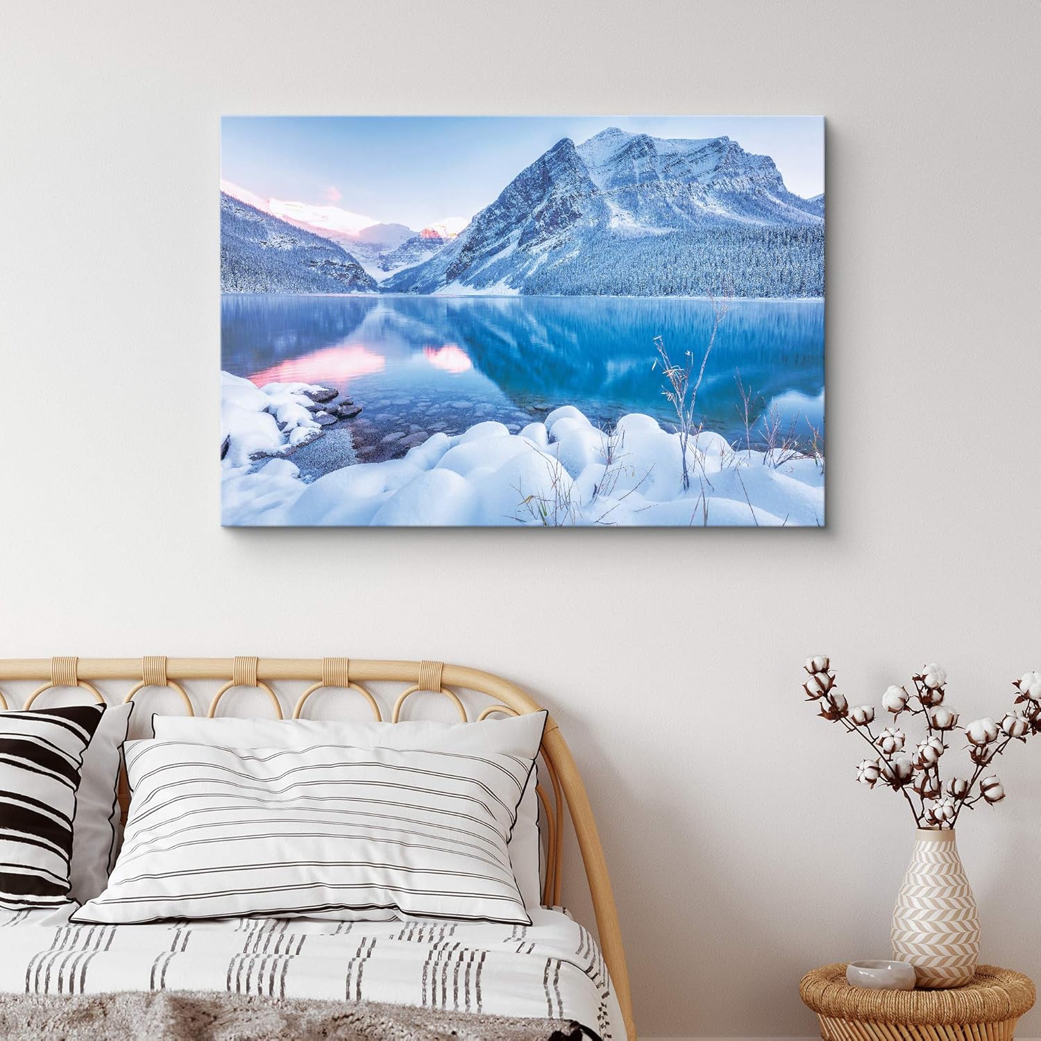 IDEA4WALL Canvas Wall Art A Pink Cloudy Sky with Snowy Mountains and Lake Landscape Wilderness Photography Realism Modern Scenic Urban for Living Room Bedroom Office inches