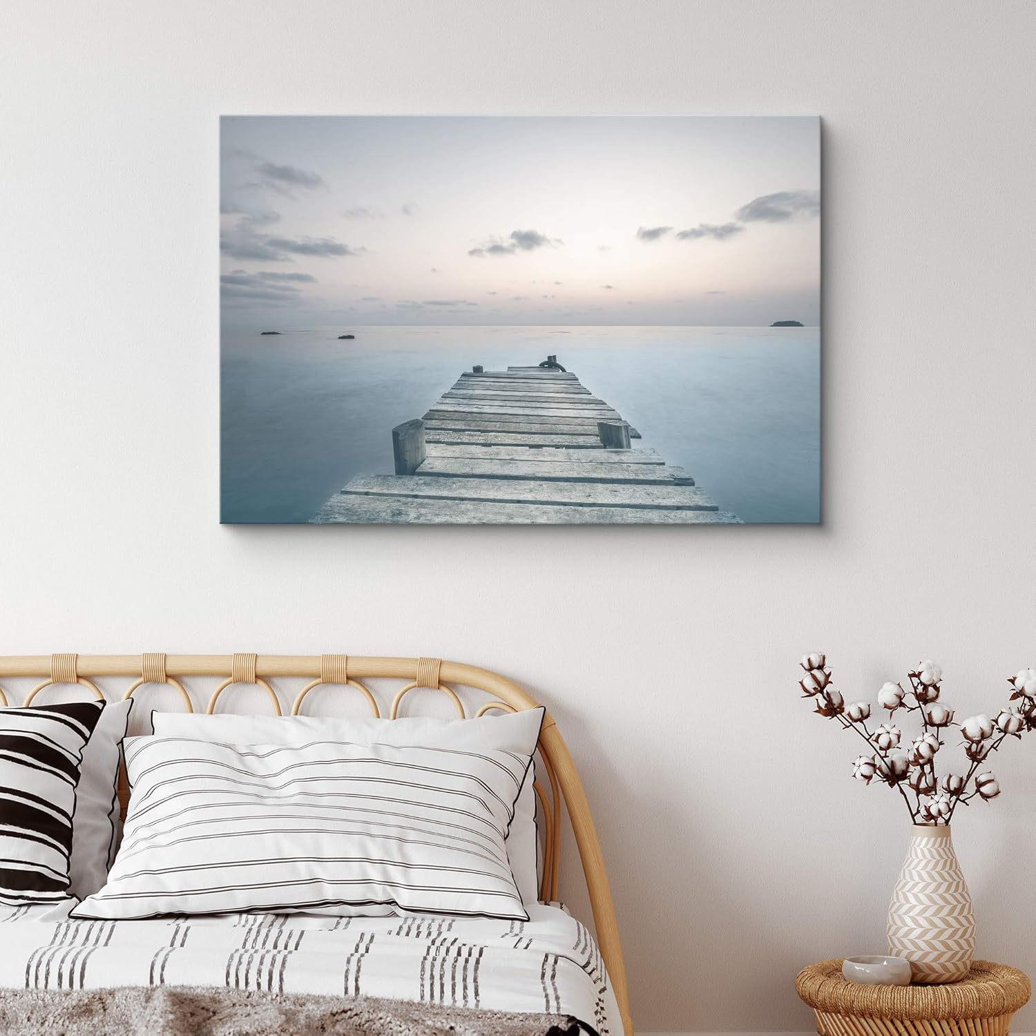 IDEA4WALL Canvas Wall Art A Wooden Pier Over The Sea with Sunset Coastal Ocean Photography Realism Modern Scenic Relax Calm Duotone for Living Room Bedroom Office inches