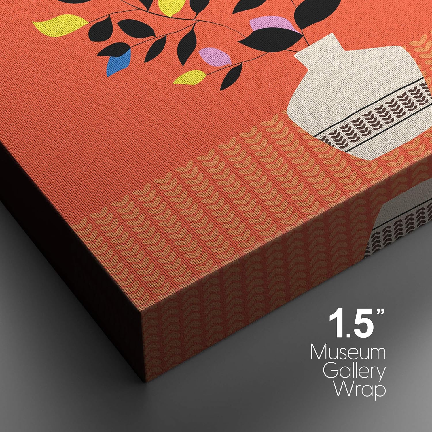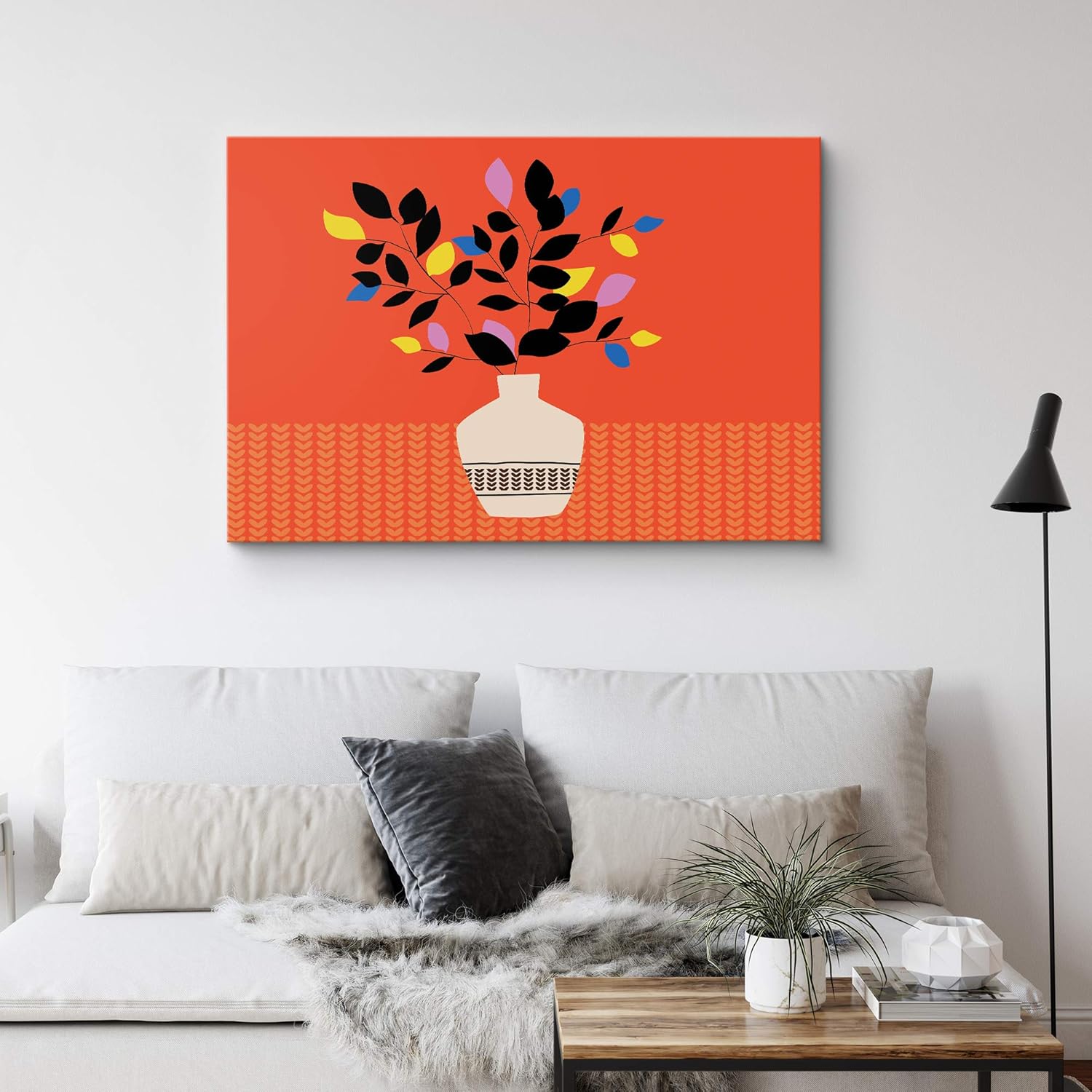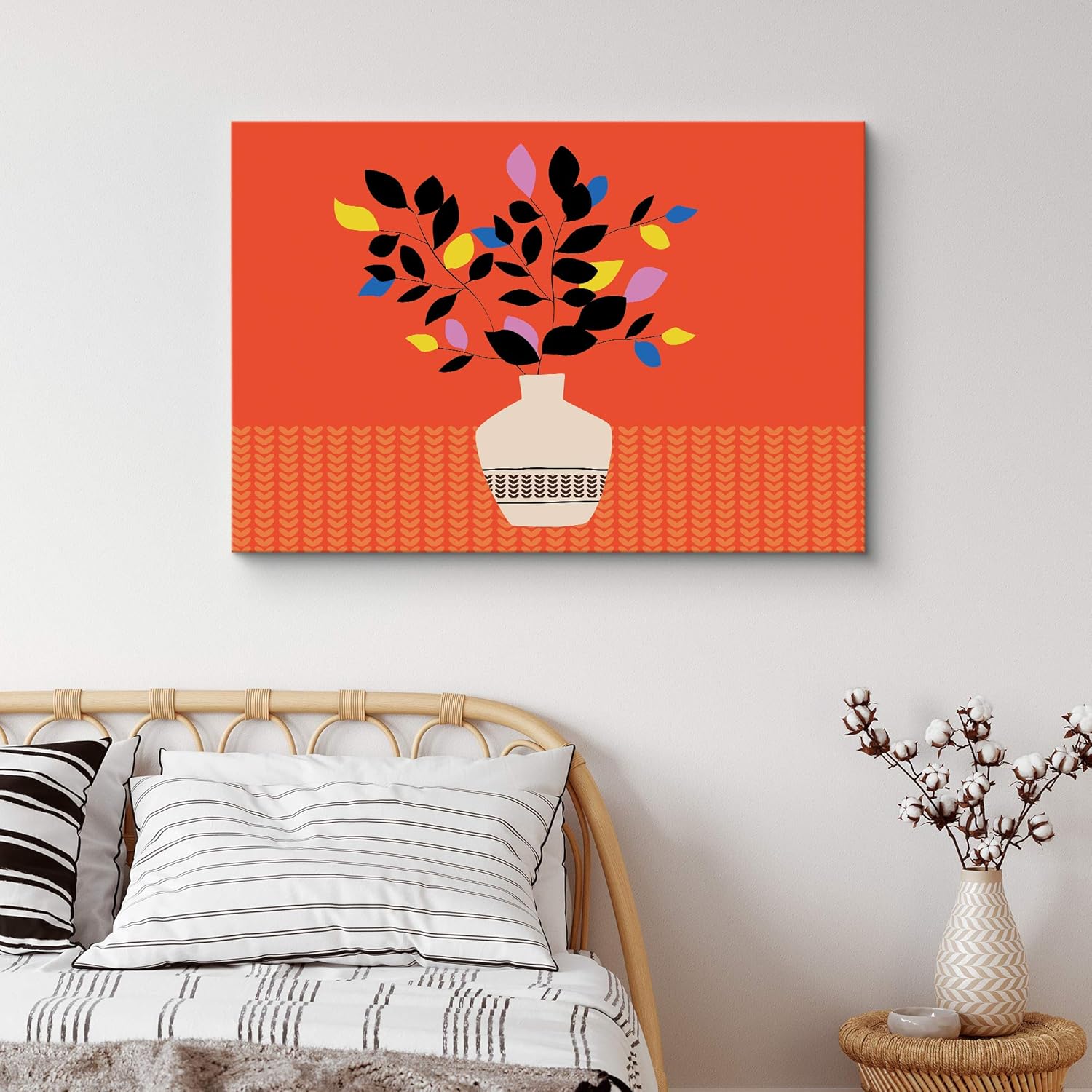IDEA4WALL Canvas Wall Art Black Yellow Pink Eucalyptus Leaves in a White Vase with Orange Background Botanical Plants Illustrations Pop Art Modern Colorful for Living Room Bedroom Office inches