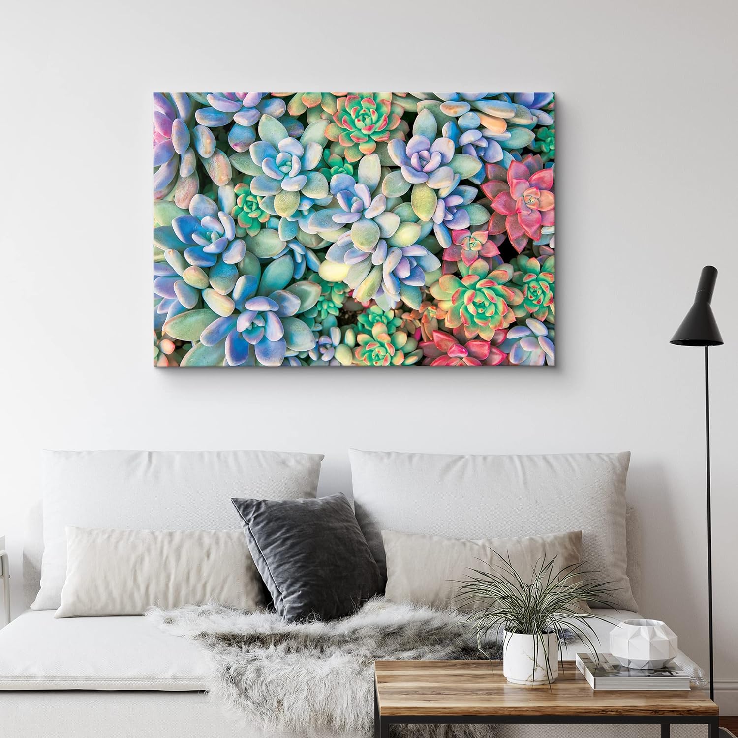 IDEA4WALL Canvas Wall Art Bouquet of Red Purple and Green Small Lily Pad Aeonium Cactus Botanical Succulent Digital Art Realism Farmhouse Country Colorful for Living Room Bedroom Office