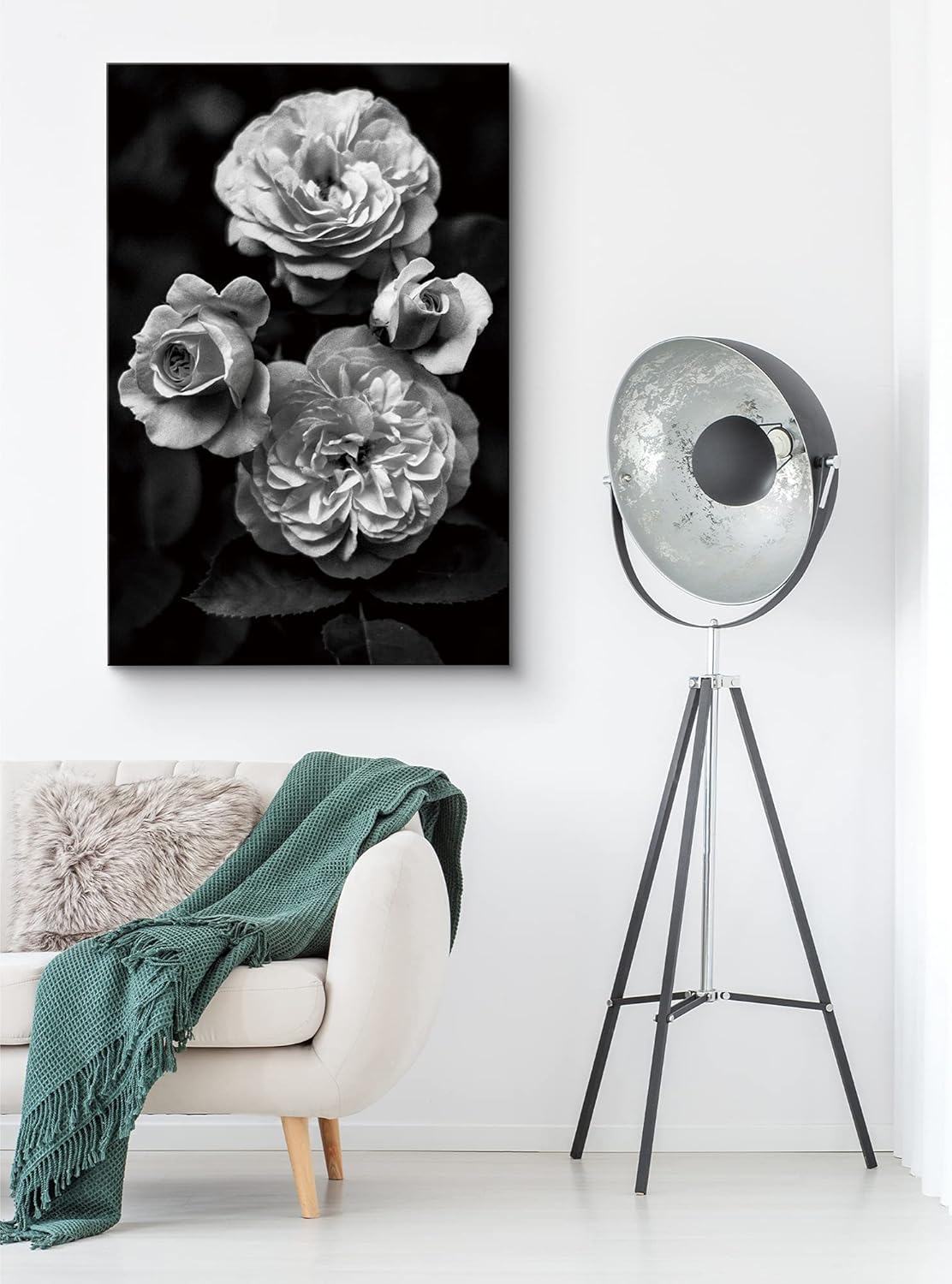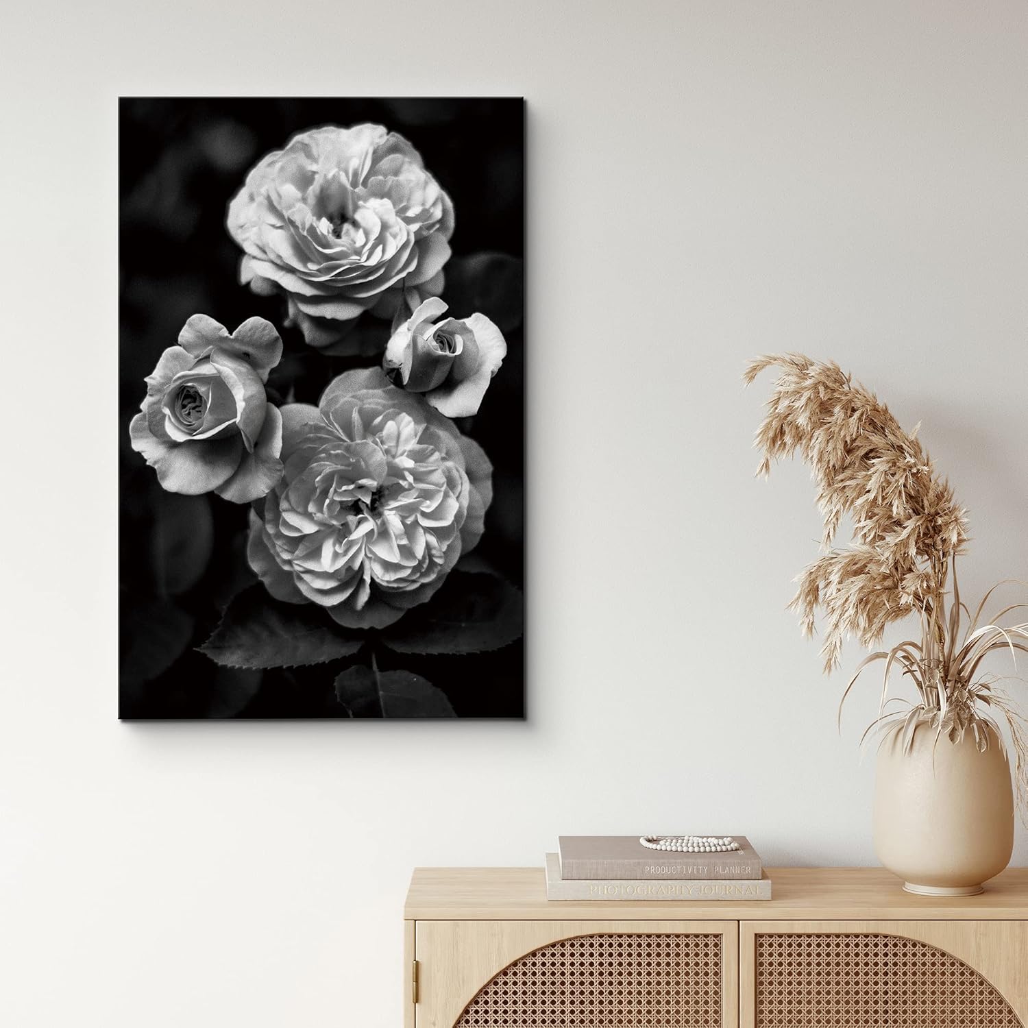 IDEA4WALL Canvas Wall Art Bouquet of Roses Queen of Sweden Floral Flower Photography Minimalism Modern Closeup Dramatic Black and White for Living Room Bedroom Office