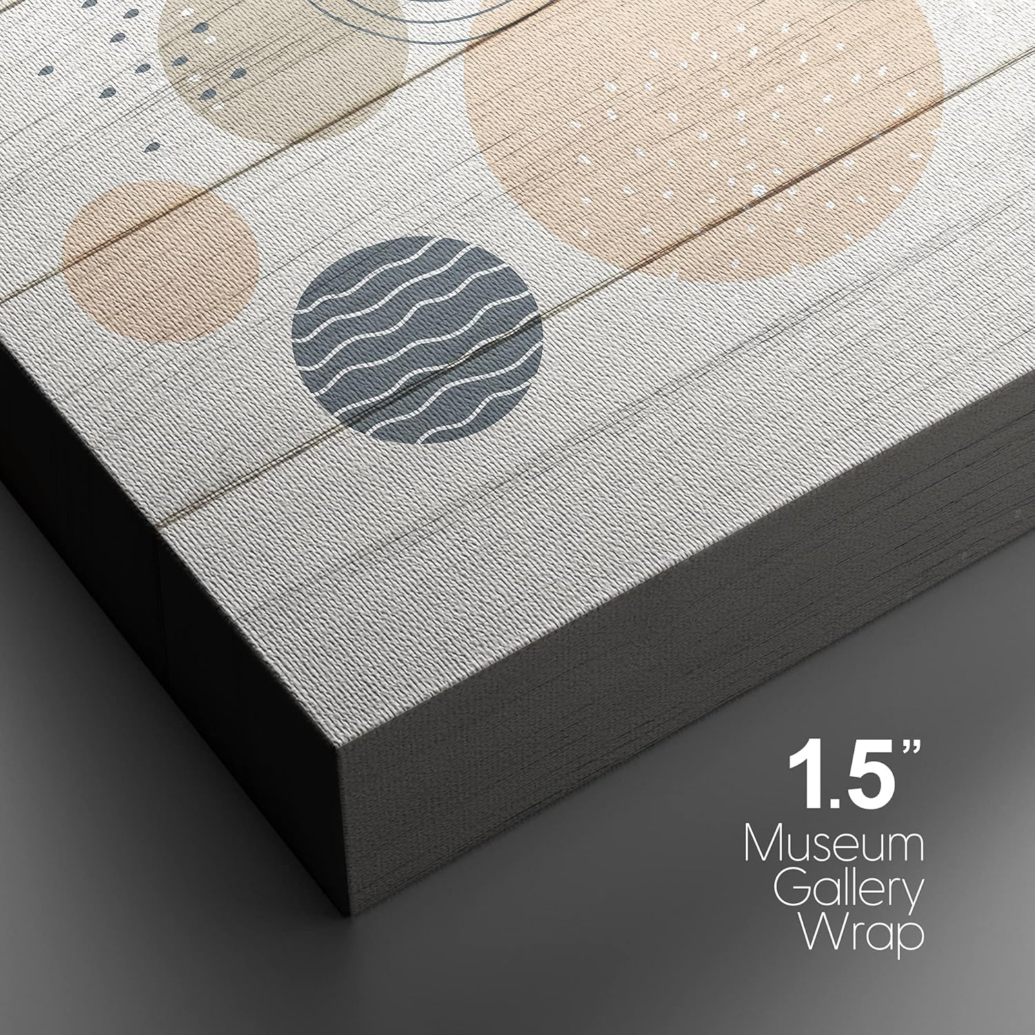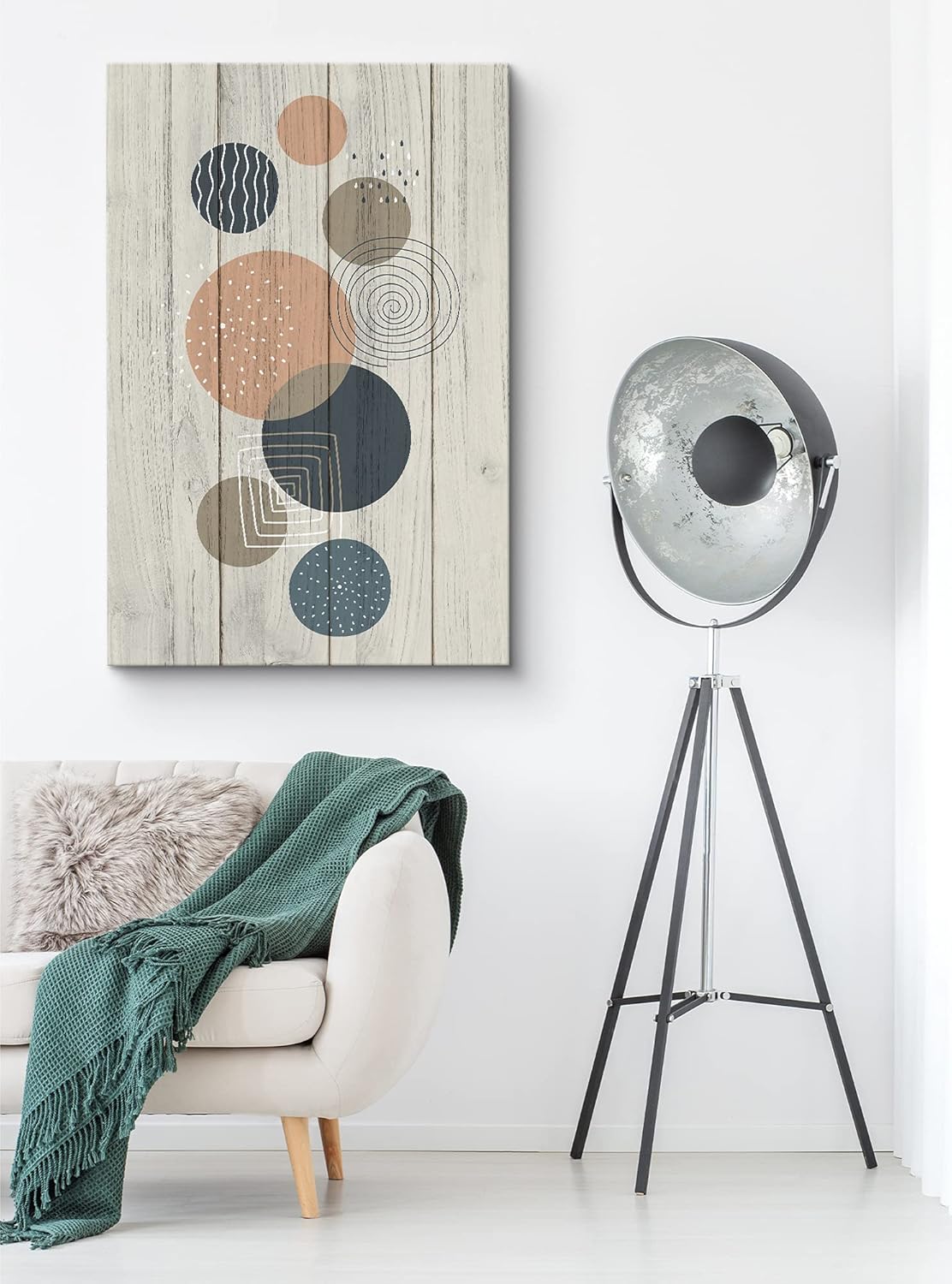 IDEA4WALL Canvas Wall Art Coral Orange, Gray, Brown, Blue Circles with White Lines and Dots in Wood Panel Geometric Shapes Illustrations Modern Art Rustic Urban for Living Room, Bedroom, Office - 16"x24"