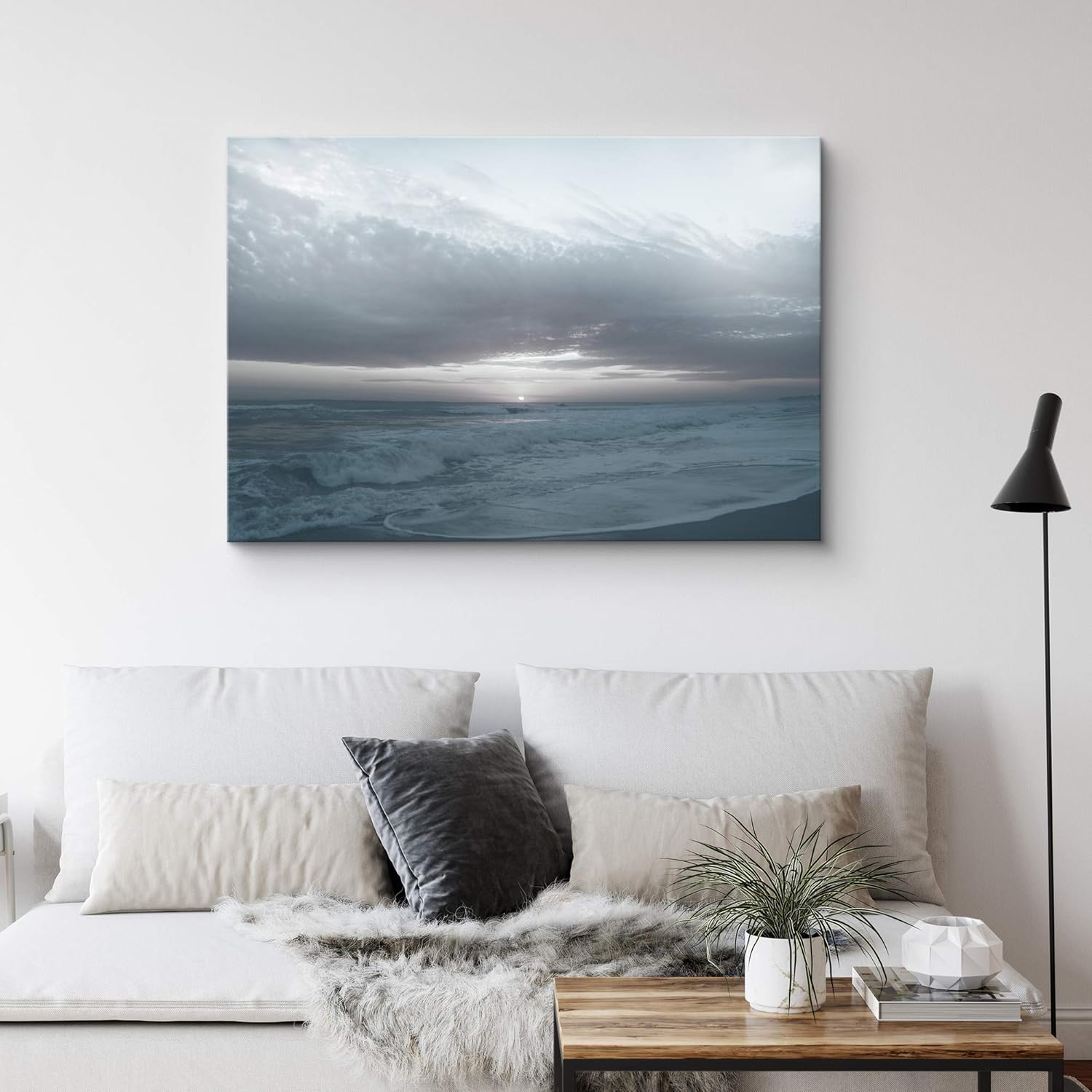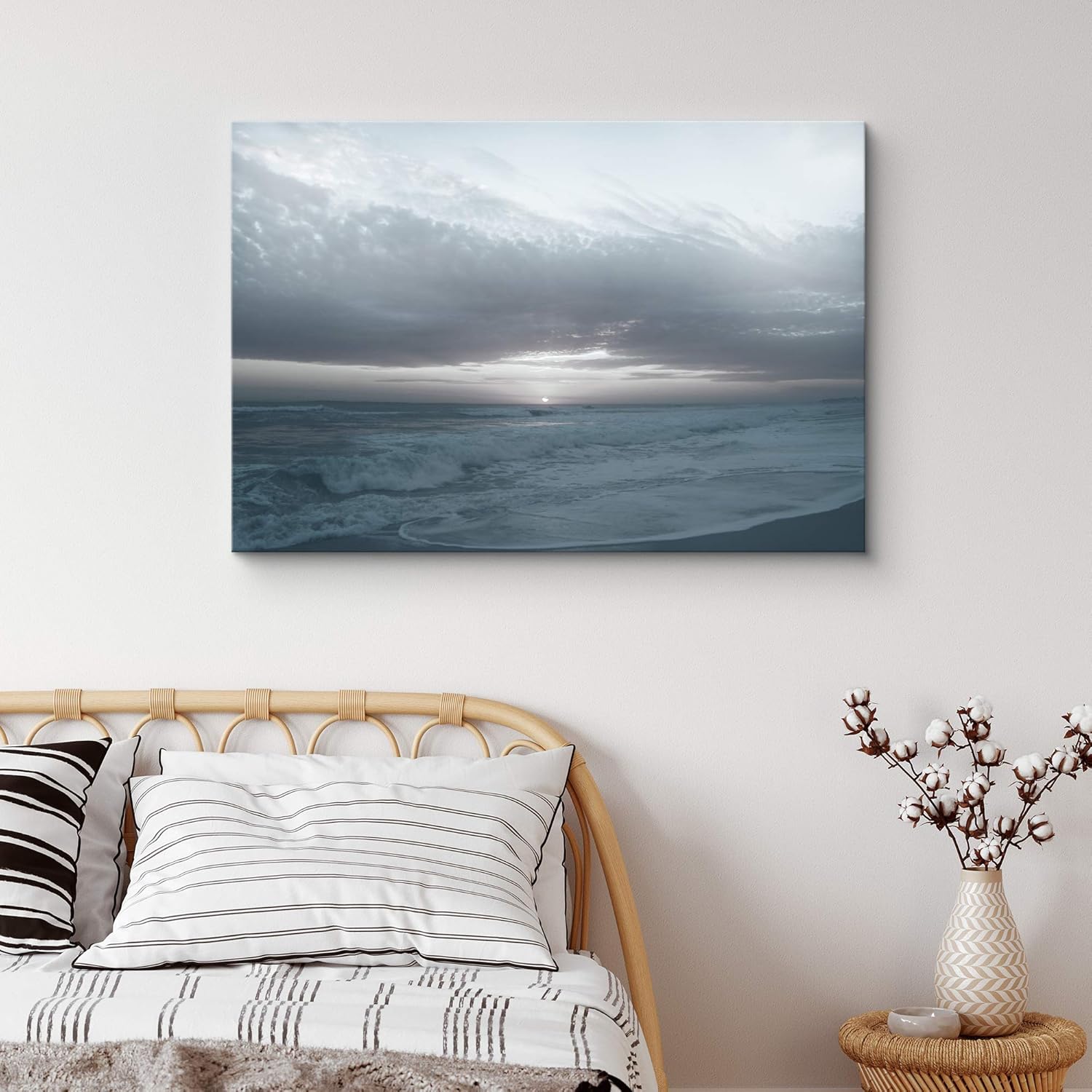 IDEA4WALL Canvas Wall Art Dramatic Cloudy Sky with Sunset Over The Beach Coastal Ocean Photography Realism Modern Scenic Relax Calm Duotone for Living Room Bedroom Office inches