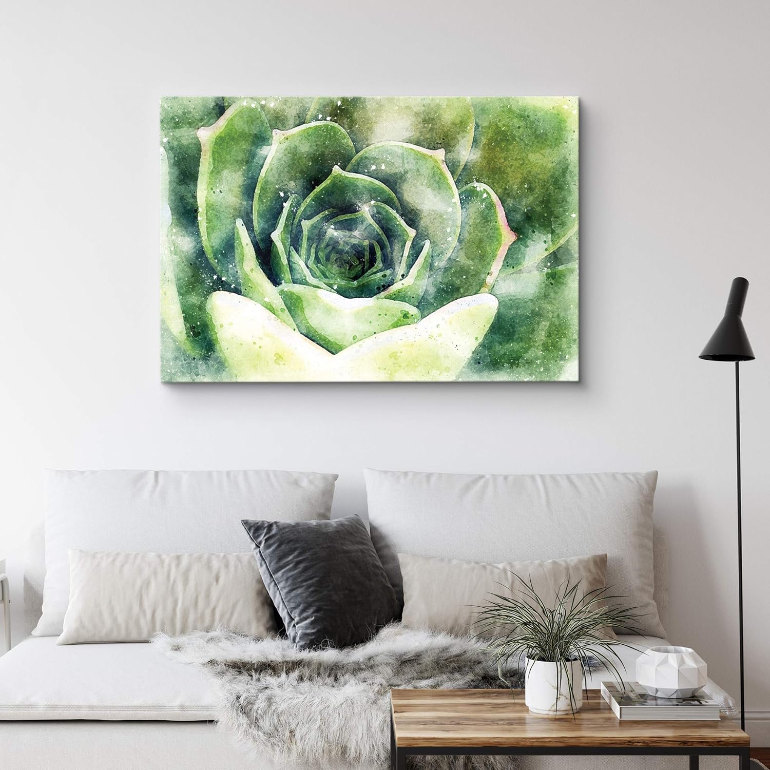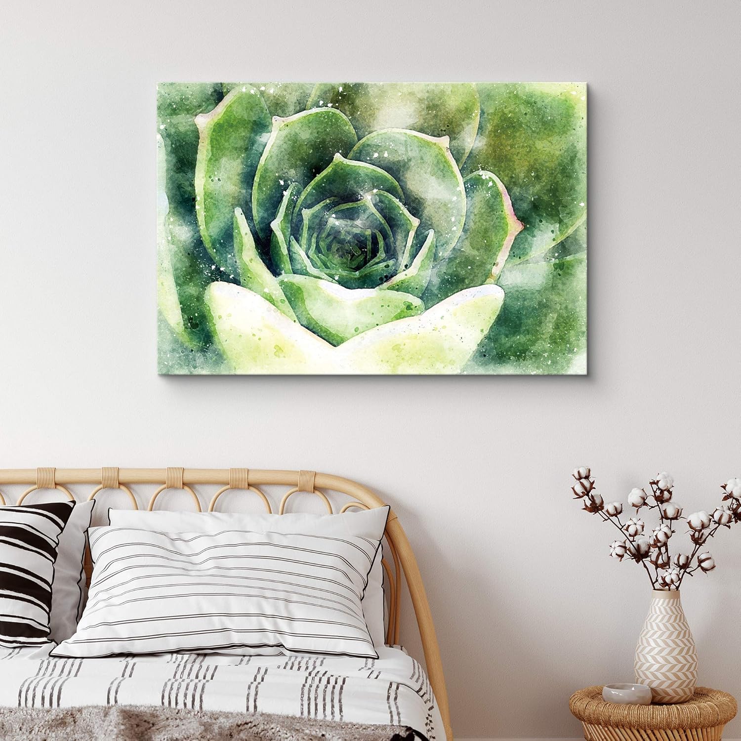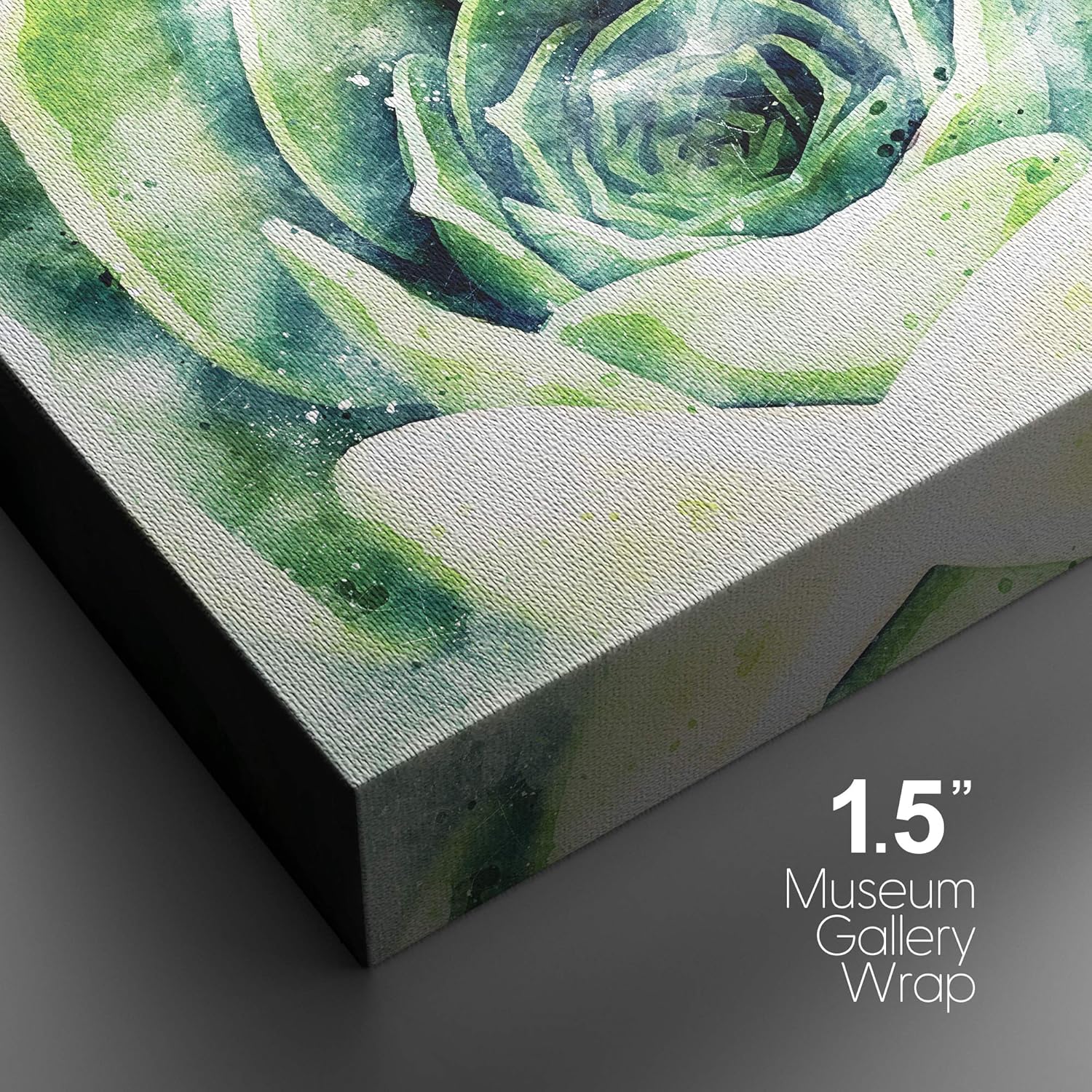 IDEA4WALL Canvas Wall Art Green Echeveria Blue Rose Botanical Succulent Watercolor Realism Modern Closeup Expressive for Living Room Bedroom Office inches