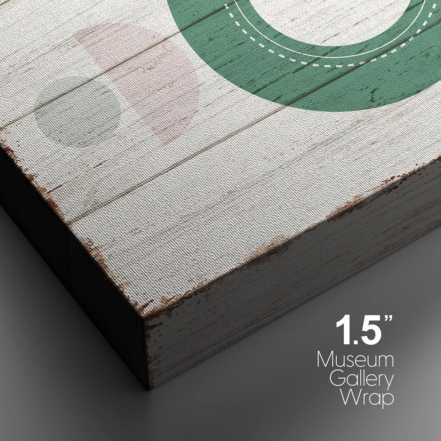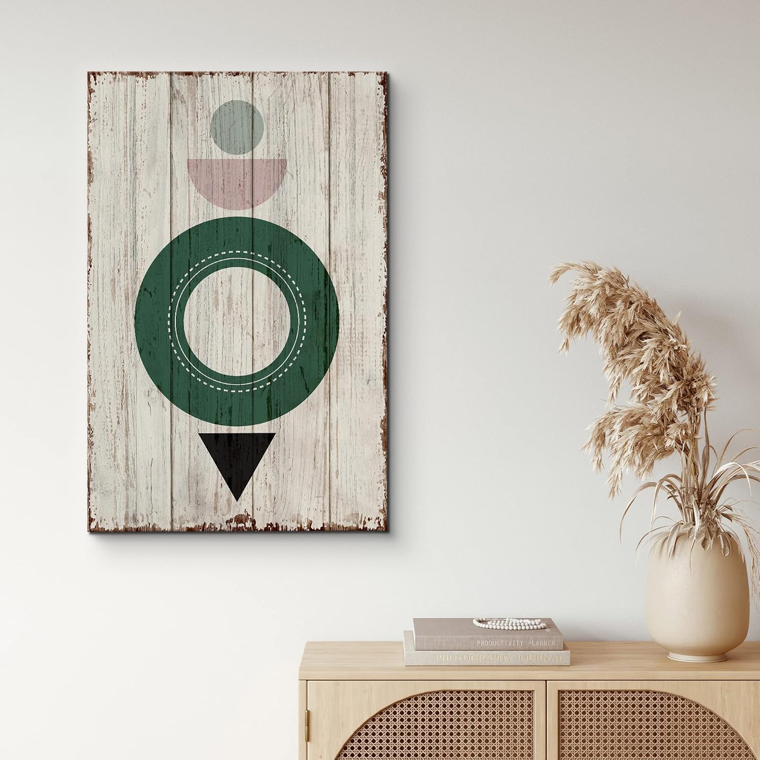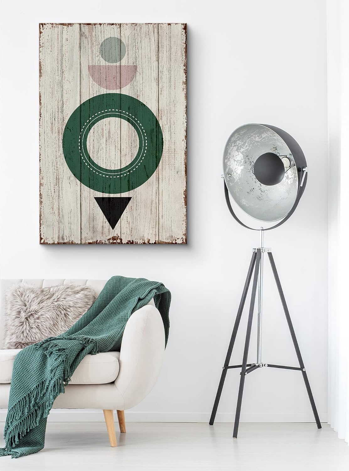 IDEA4WALL Canvas Wall Art Light Green Pink Circles Black Triangle with White Lines in Wood Panel Geometric Shapes Illustrations Modern Art Rustic Urban for Living Room Bedroom Office