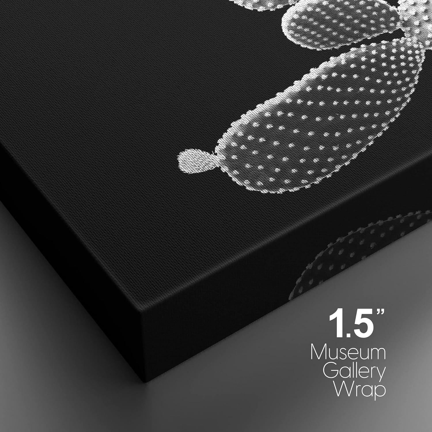 IDEA4WALL Canvas Wall Art Opuntia Prickly Pear Cactus with Flowers Botanical Succulent Photography Realism Contemporary Closeup Urban Black and White for Living Room, Bedroom, Office - 24"x36"