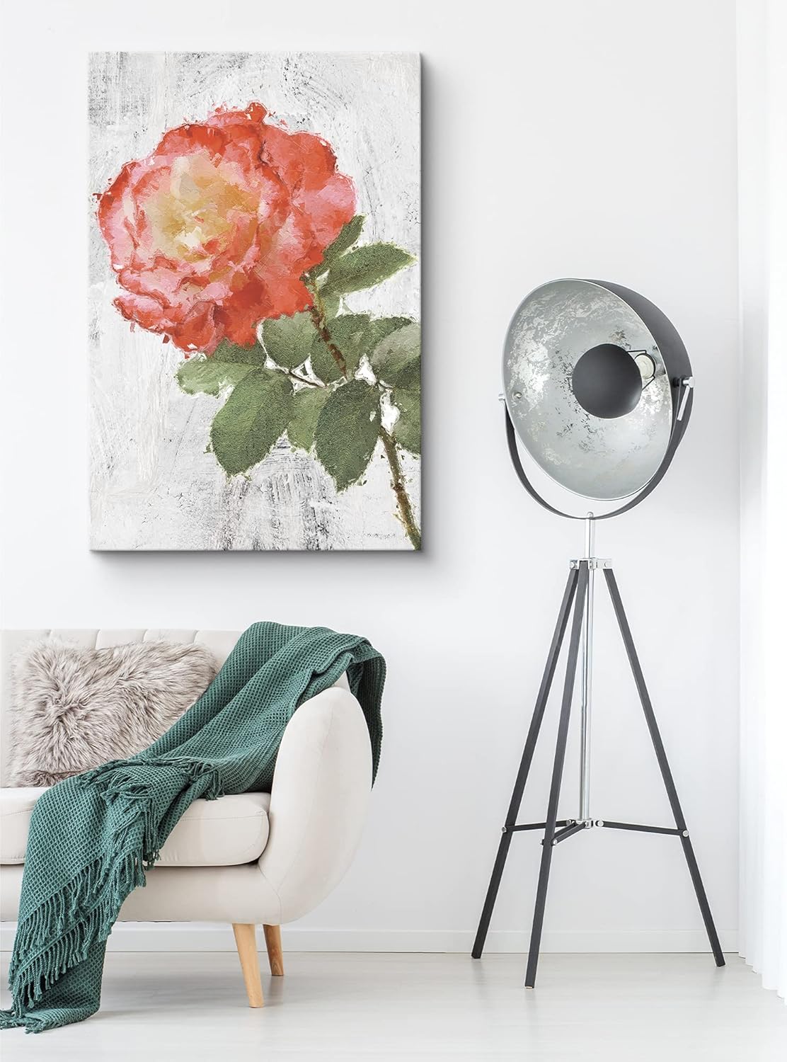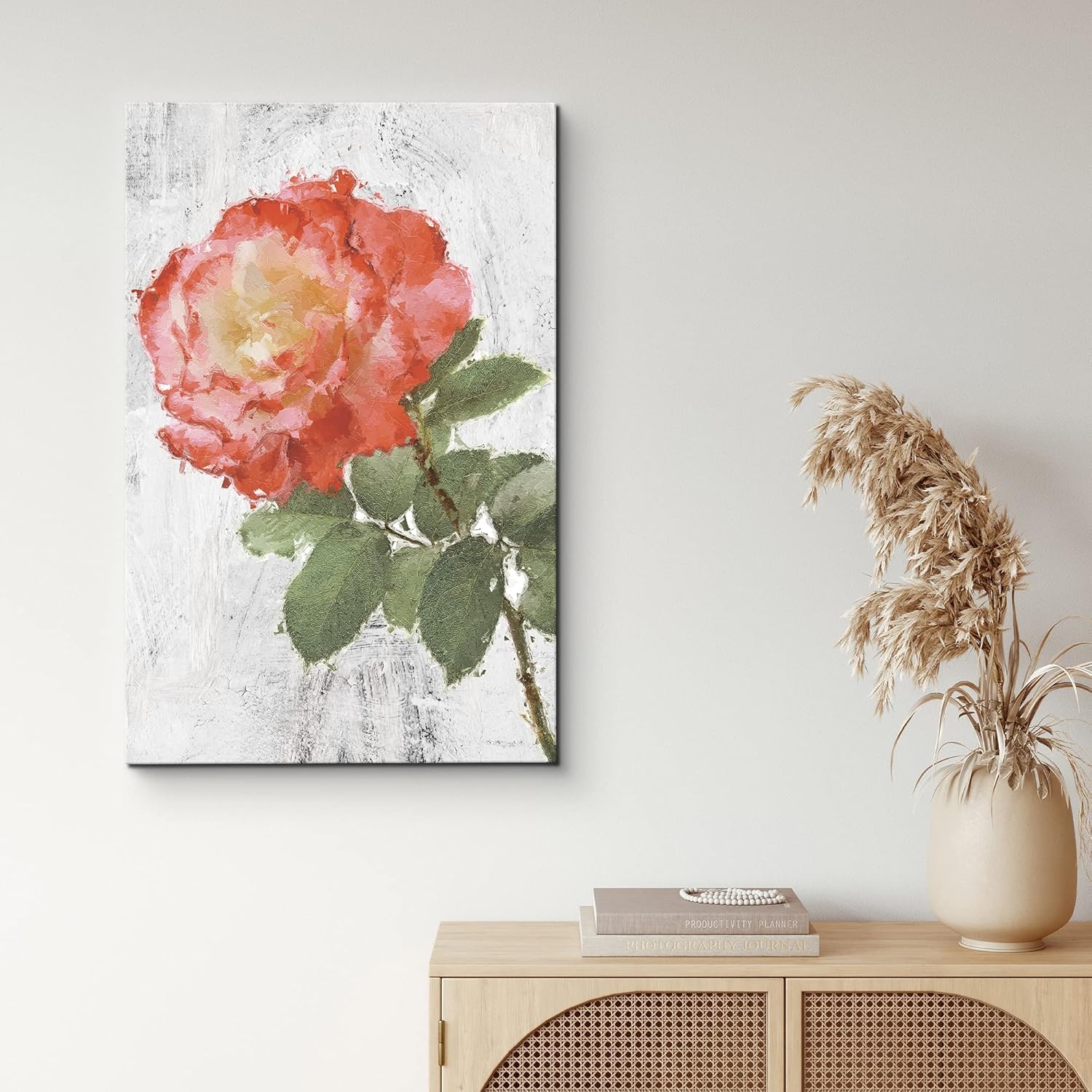 IDEA4WALL Canvas Wall Art Red Orange and Yellow Chinese Rose with White Texture Background Floral Flower Oil Painting Realism Romantics Closeup Colorful for Living Room Bedroom Office