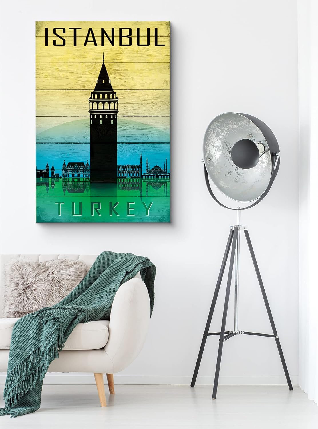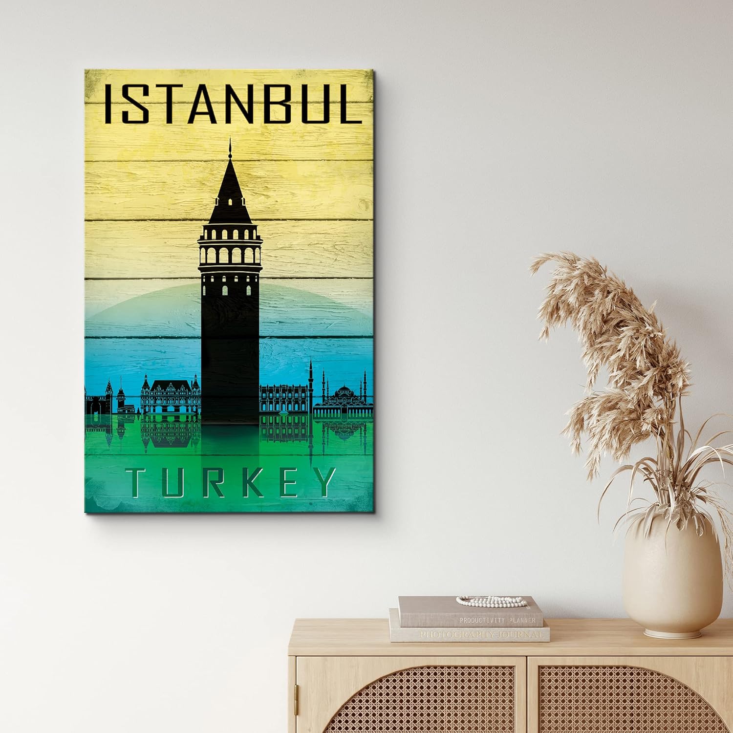 IDEA4WALL Canvas Wall Art Vintage Orange and Black Istanbul Turkey with Blue and Yellow Skyline Places Country Illustrations Modern Art Minimalist Scenic Urban for Living Room Bedroom Office