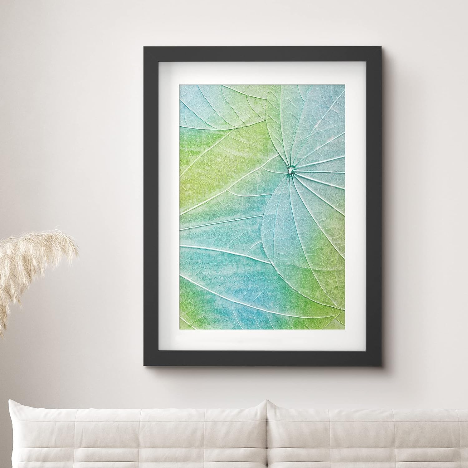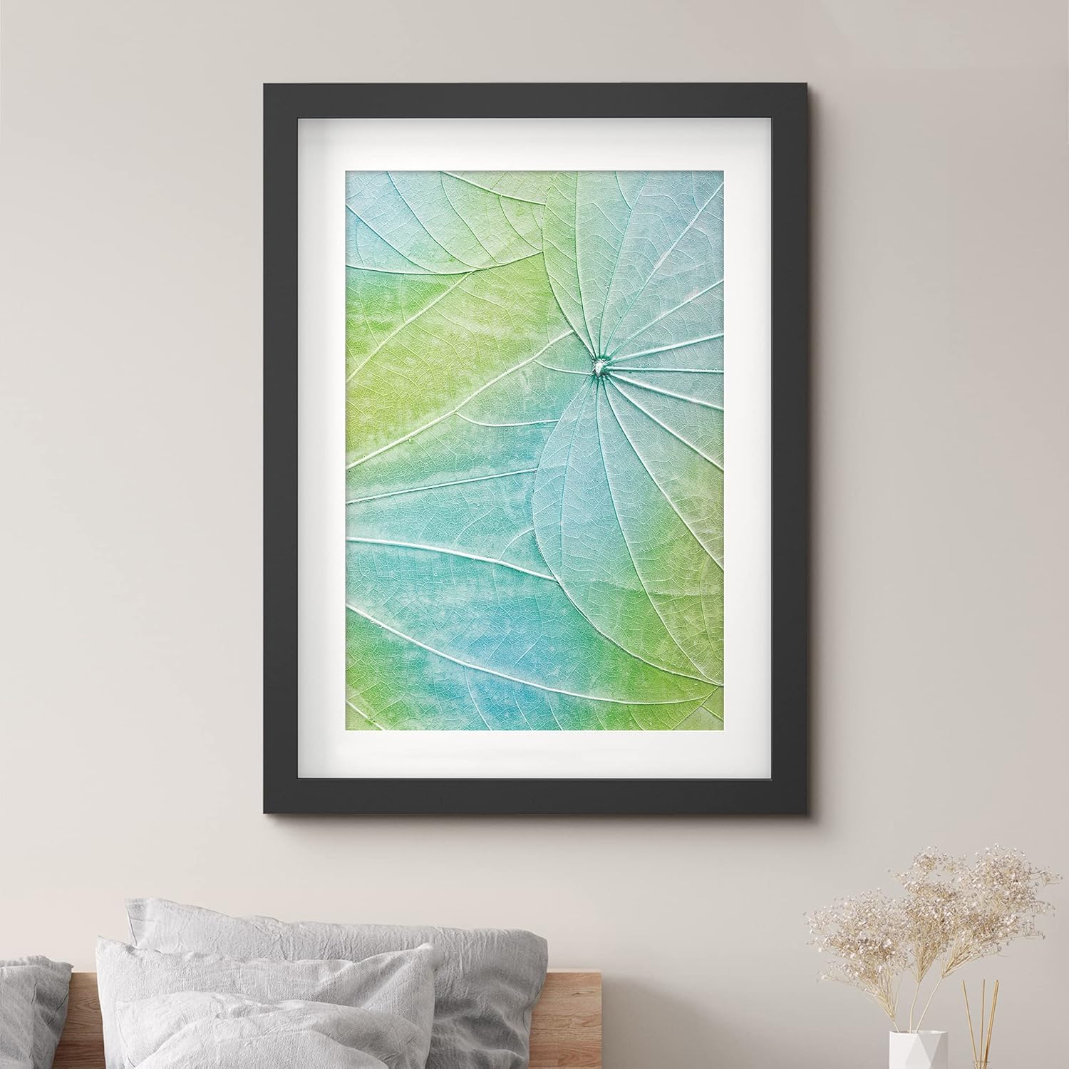 IDEA4WALL Framed Canvas Print Wall Art Teal and Green Leaf Overlay Floral Plants Illustrations Modern Art Minimalist Colorful Multicolor Neon for Living Room Bedroom Office inches
